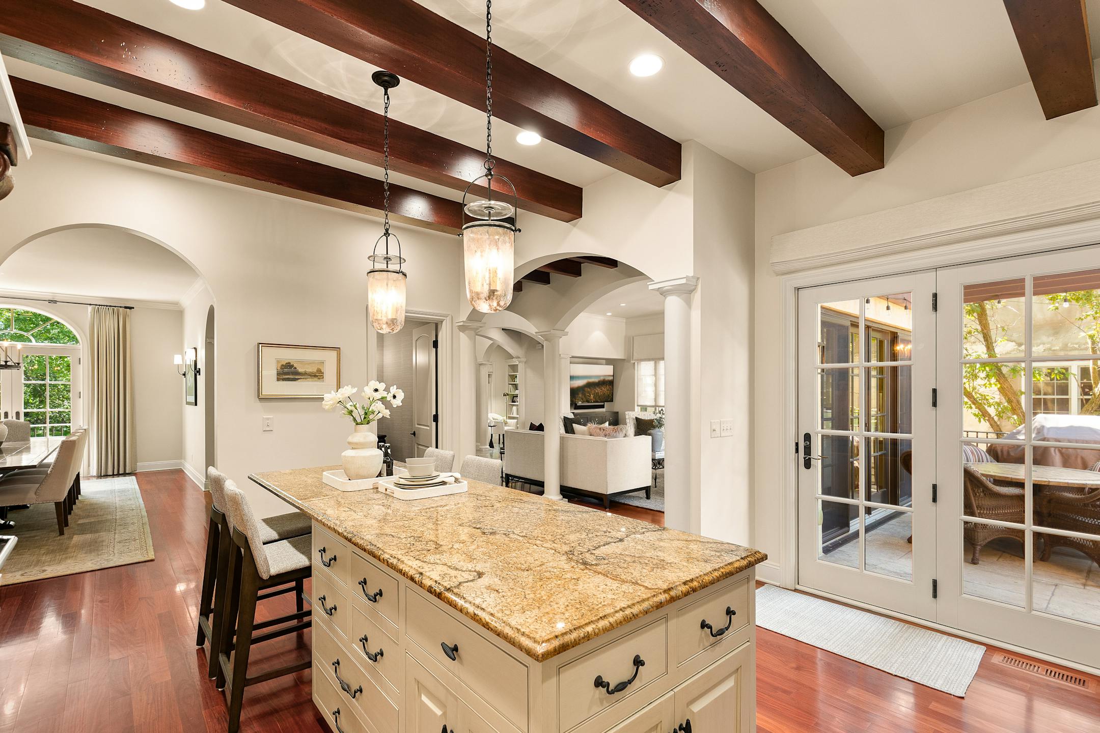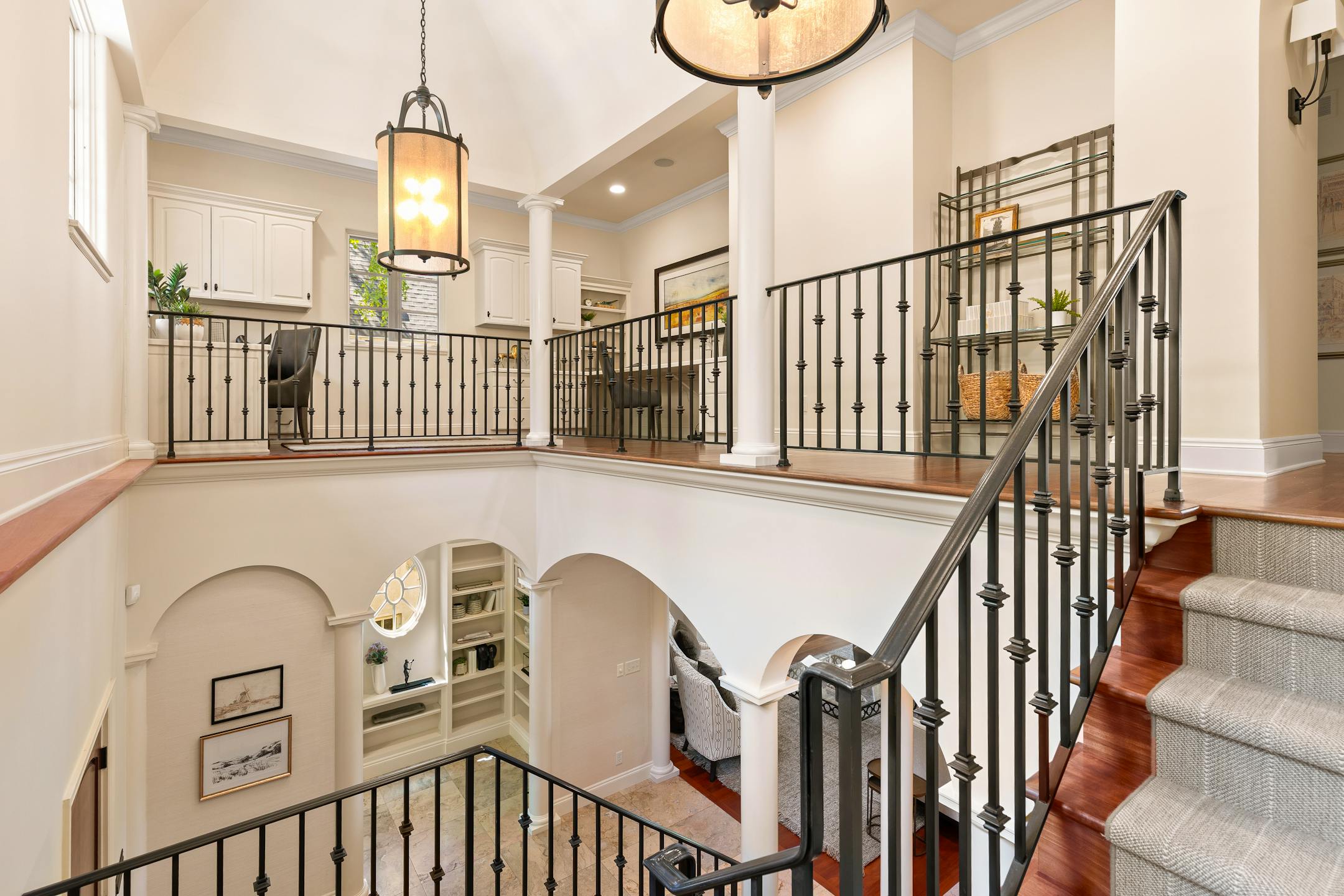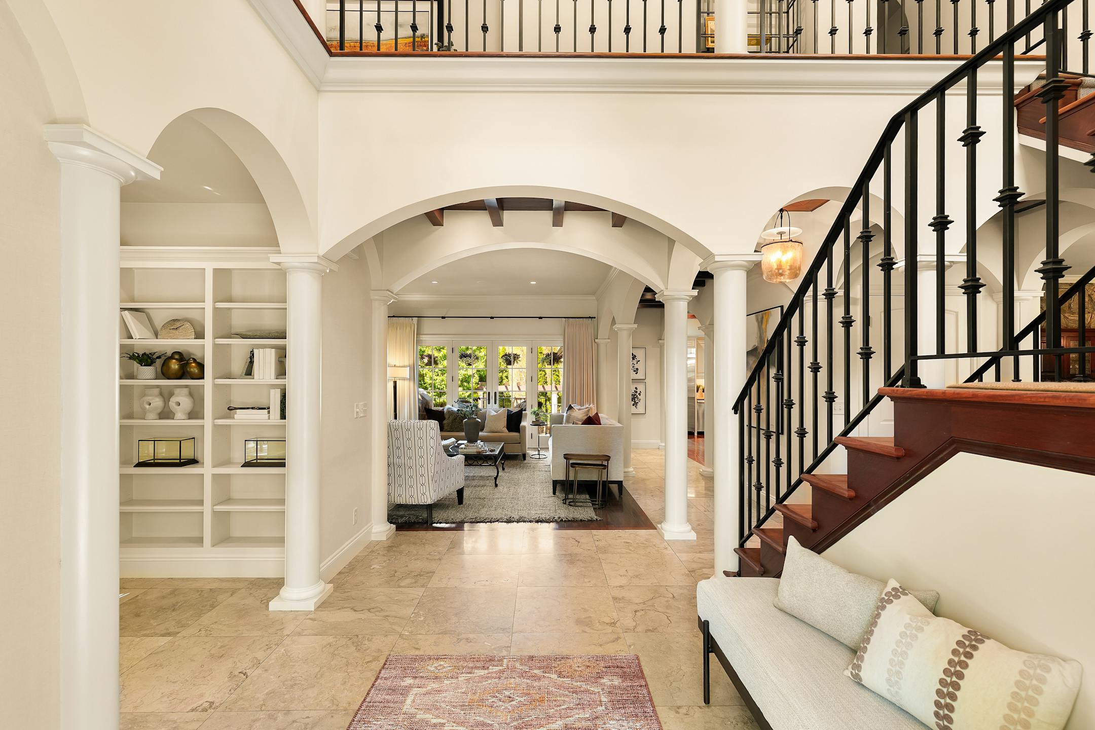 Arched doorways and windows, barrel ceilings, pillars, decorative tiles, Brazilian mahogany floors.