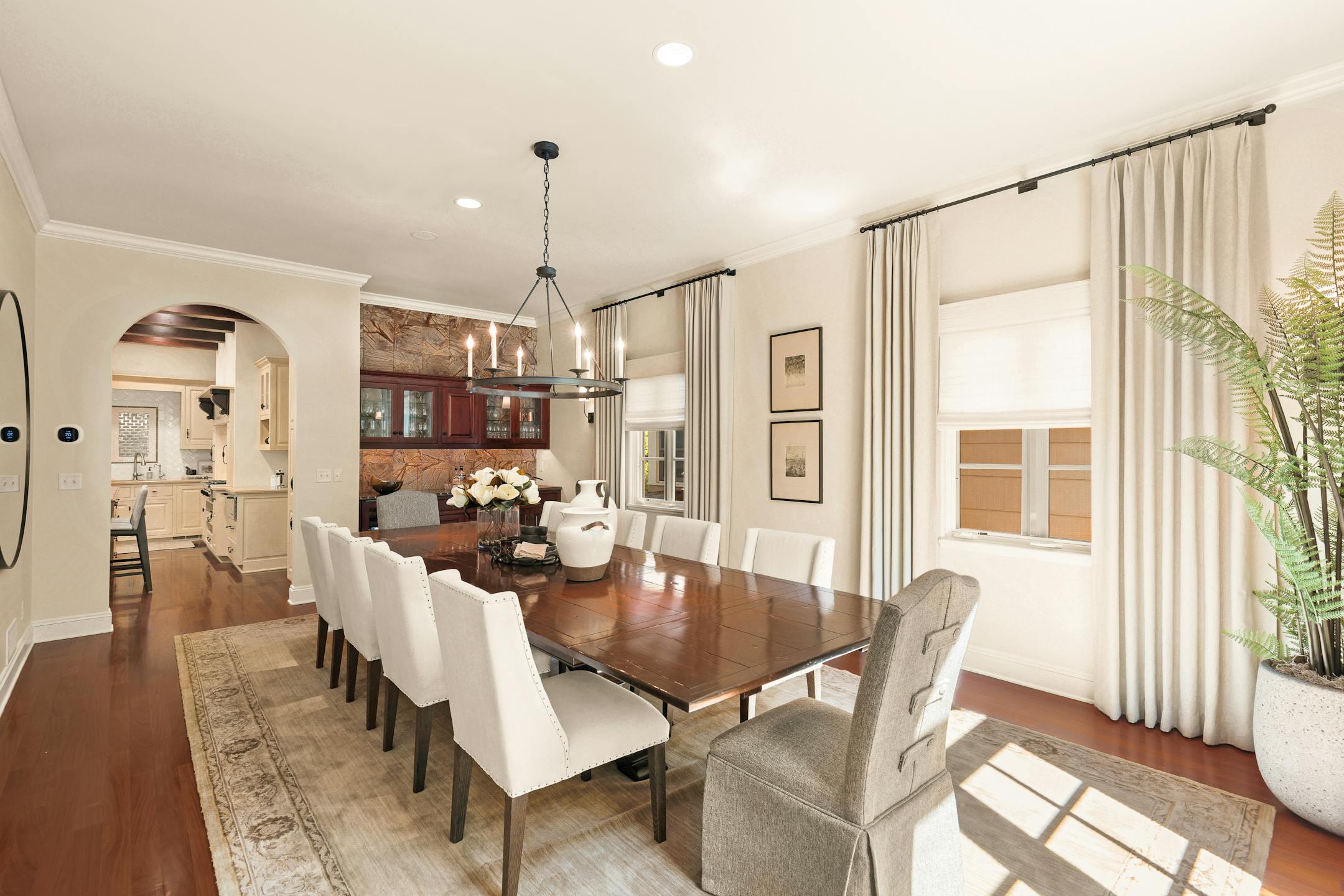 Although the Fredericks thought what Katie Frederick called their 4,700-square-foot home’s “really heavy Italian style,” with rich colors and heavy draperies was beautiful, they preferred a brighter, less formal look. So they painted rooms in light, neutral shades.