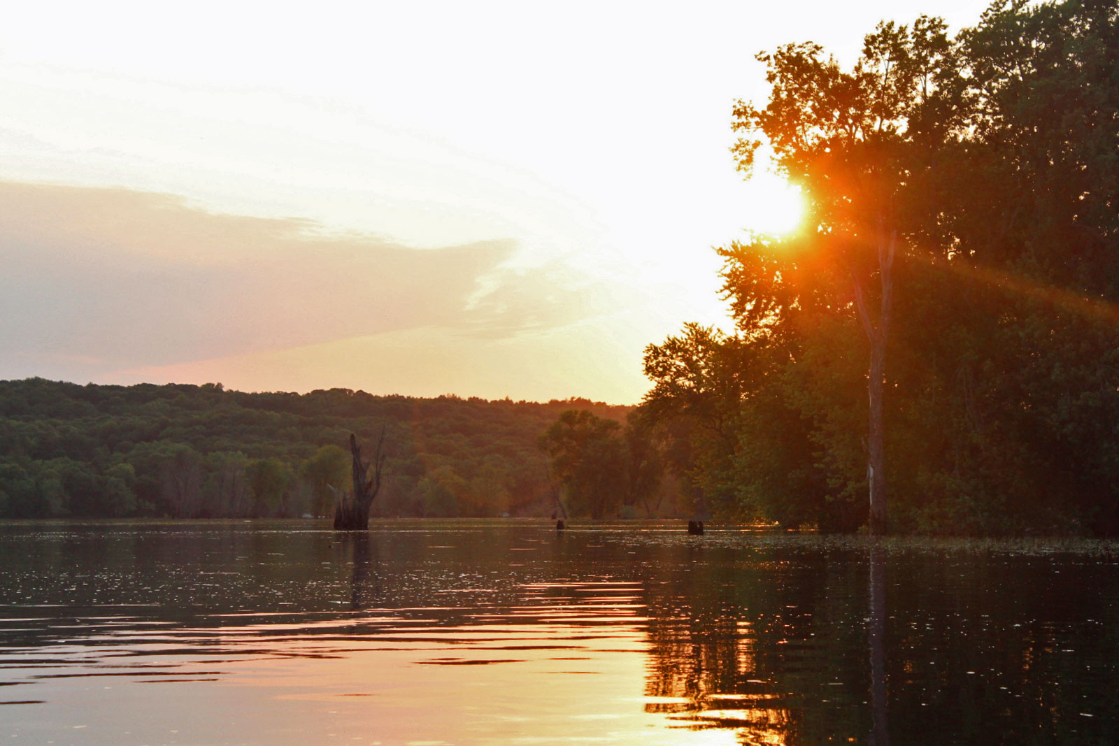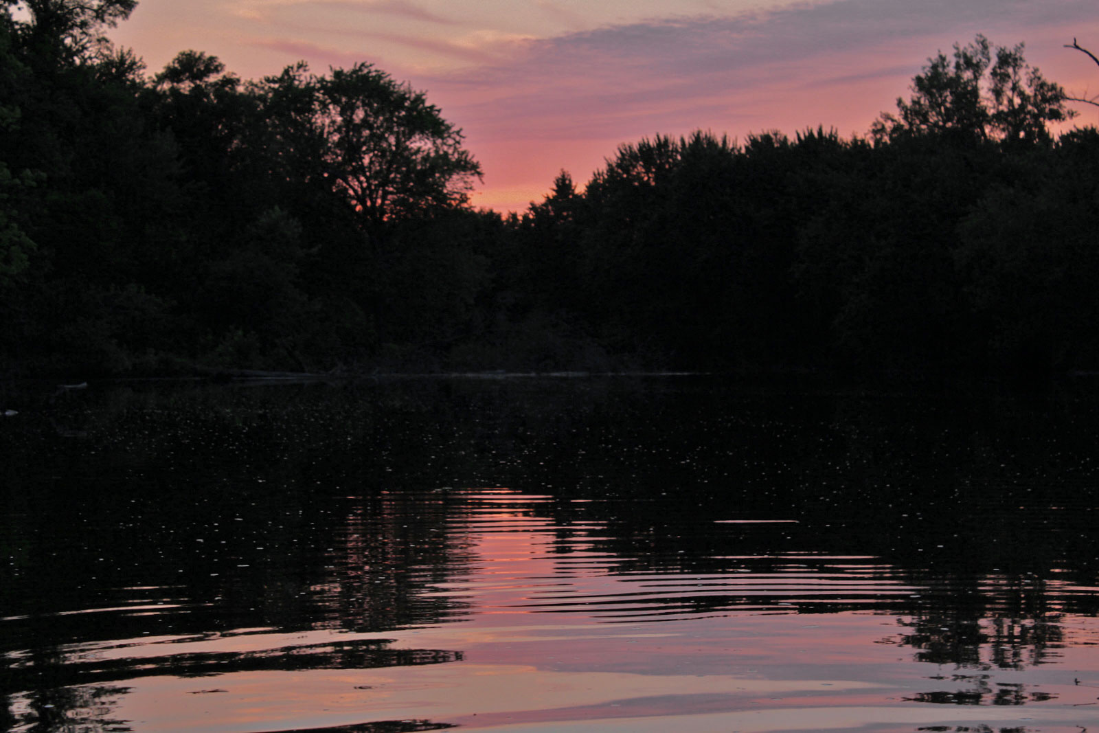 The sound of rushing water greeted us Friday evening as a friend and I launched our canoe on a small Wisconsin river which shortly downstream spilled into the St. Croix. We had fly rods and dreams of bass and muskies, and also my camera and thoughts of a summer sunset.