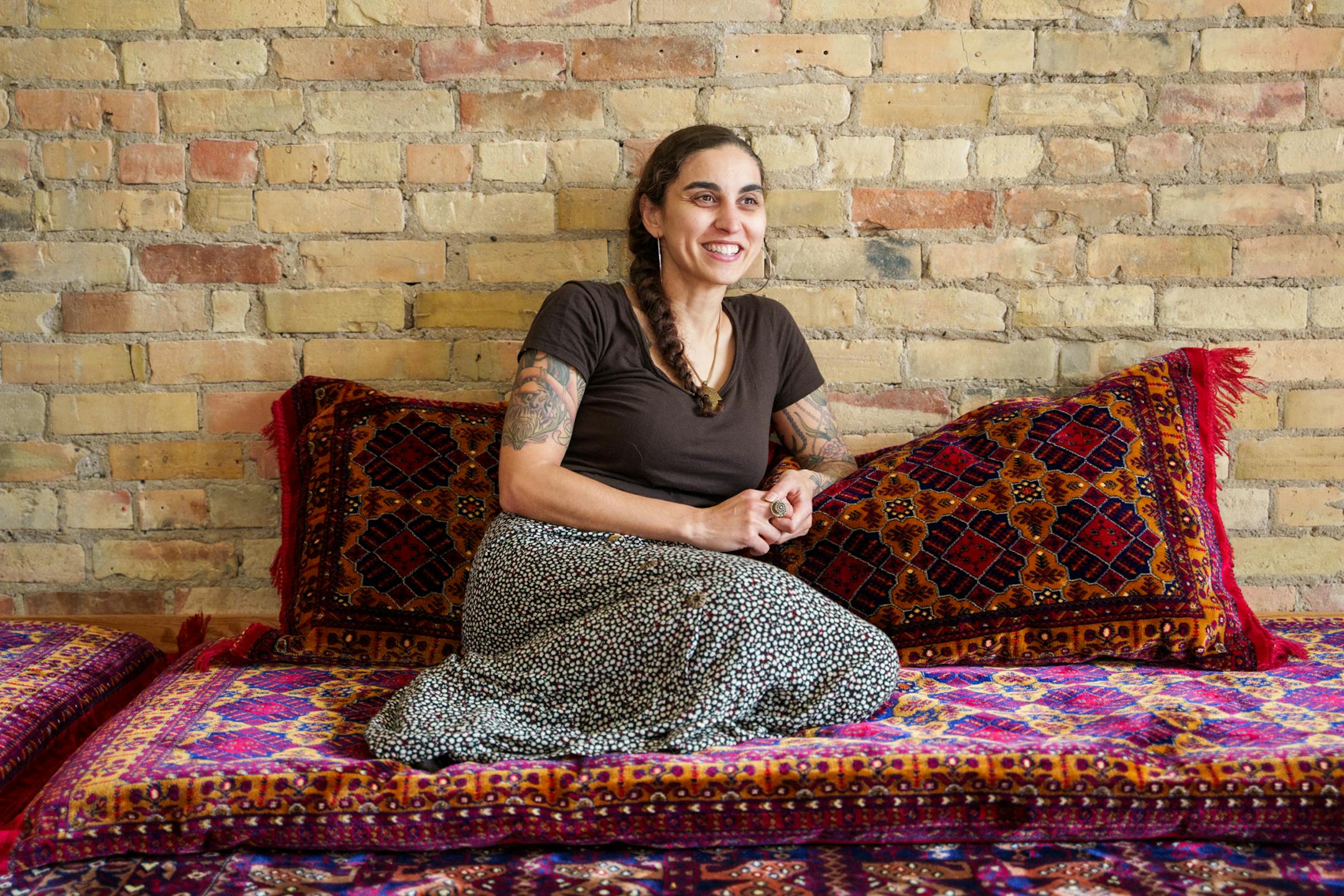 "This is what a typical Afghan living room looks like — just a big old rug with cushions all around," said Nasreen Sajady, executive director of the Afghan Cultural Society. "That's it. We're lounge-y people."