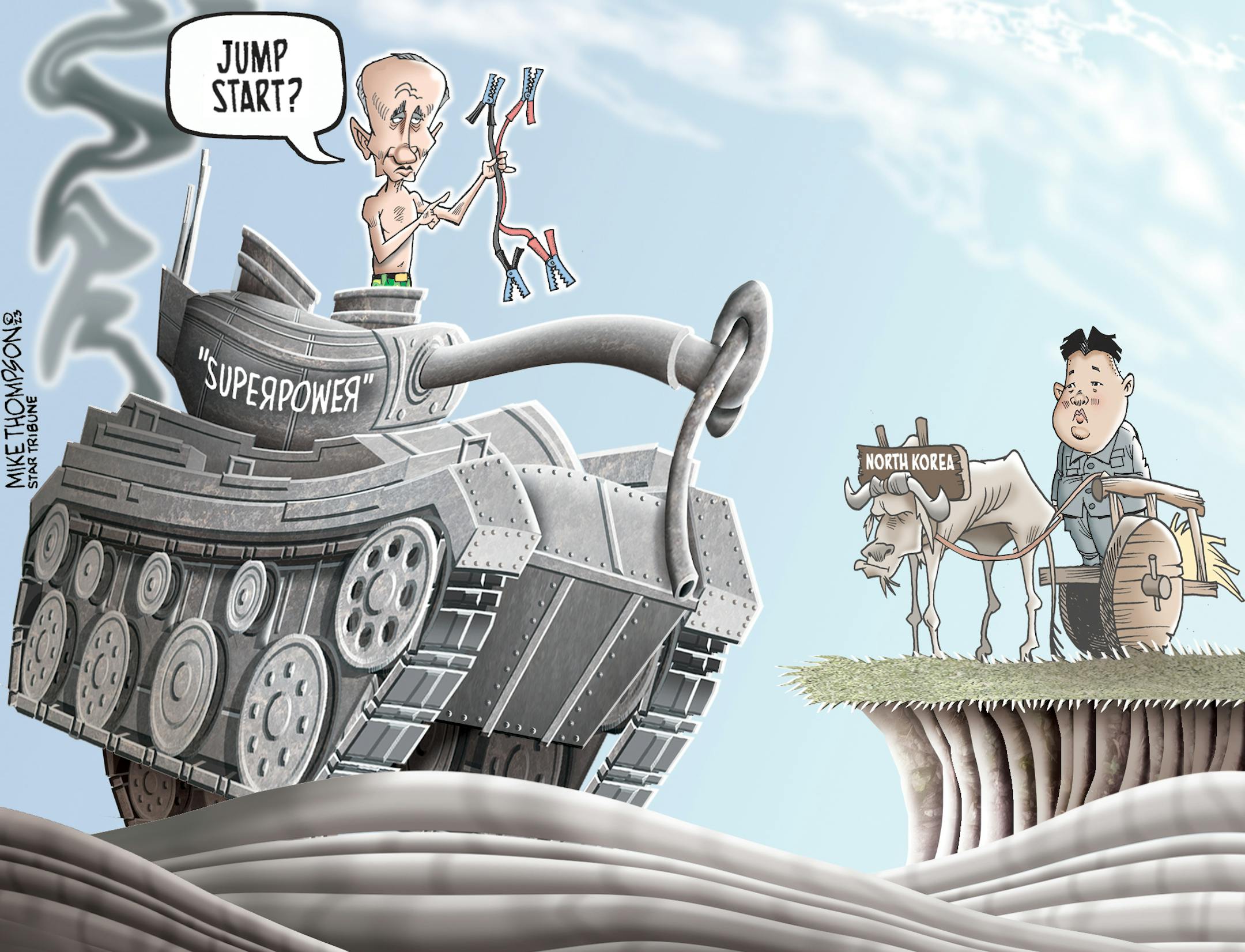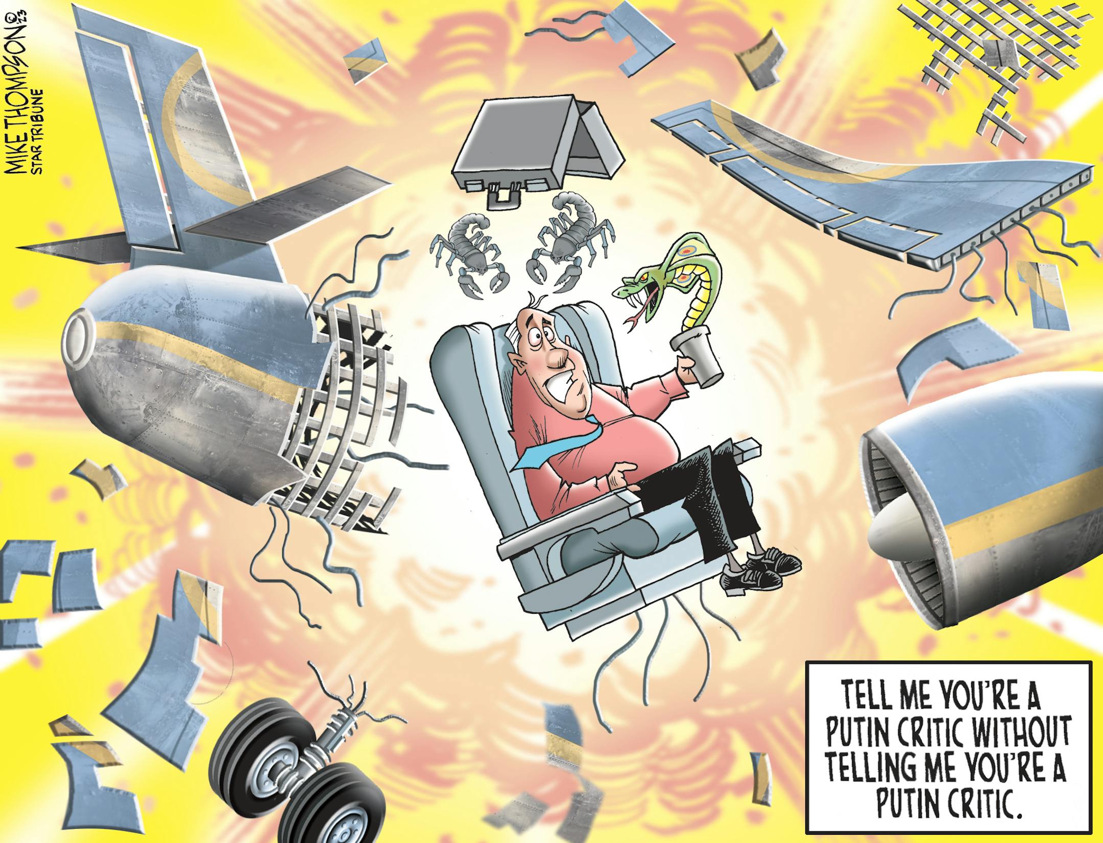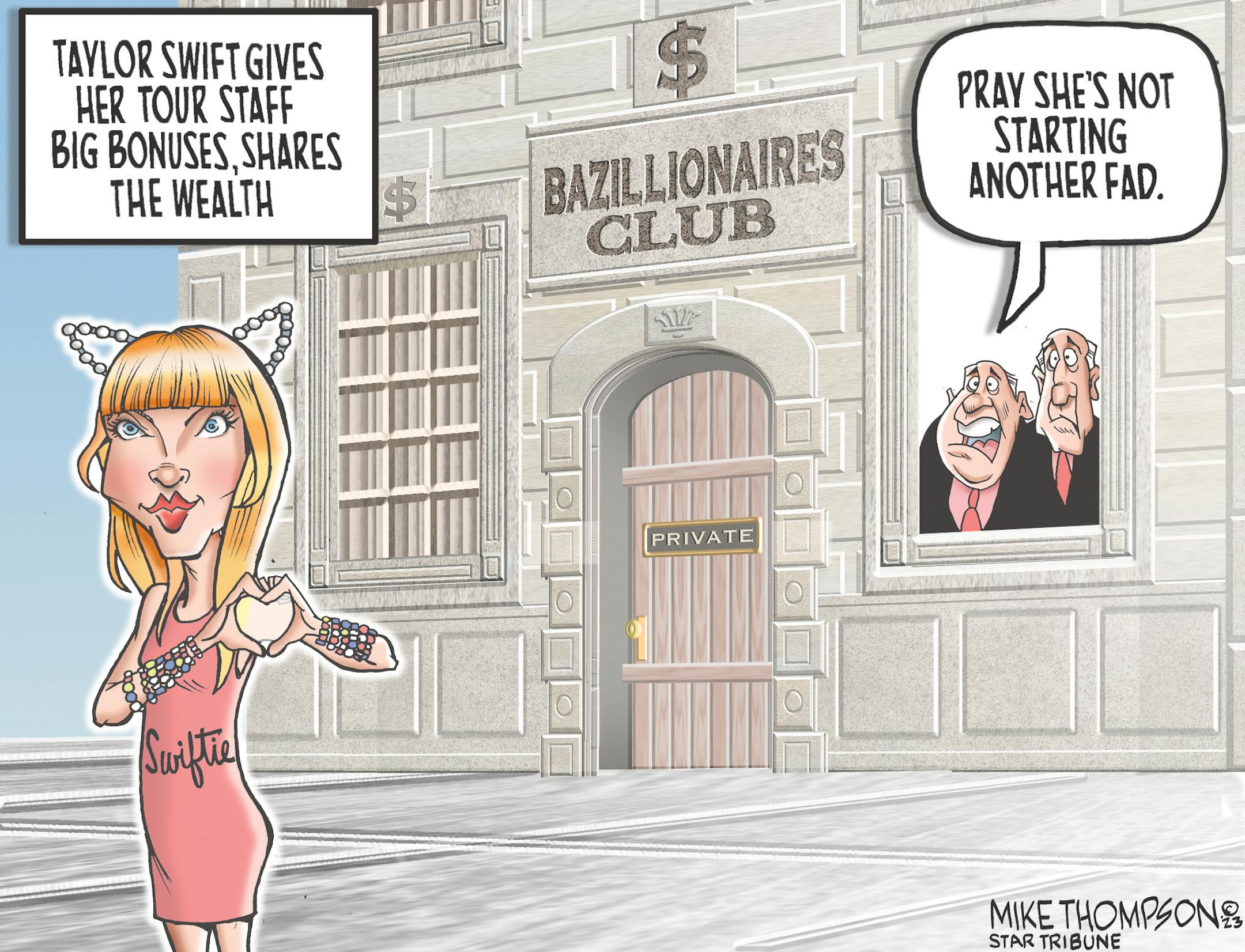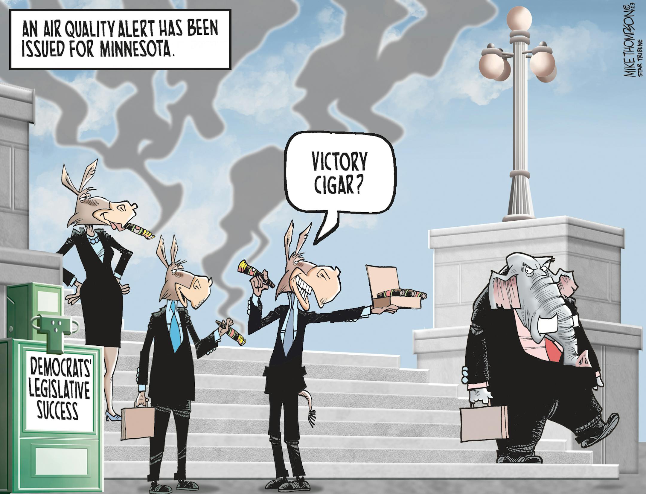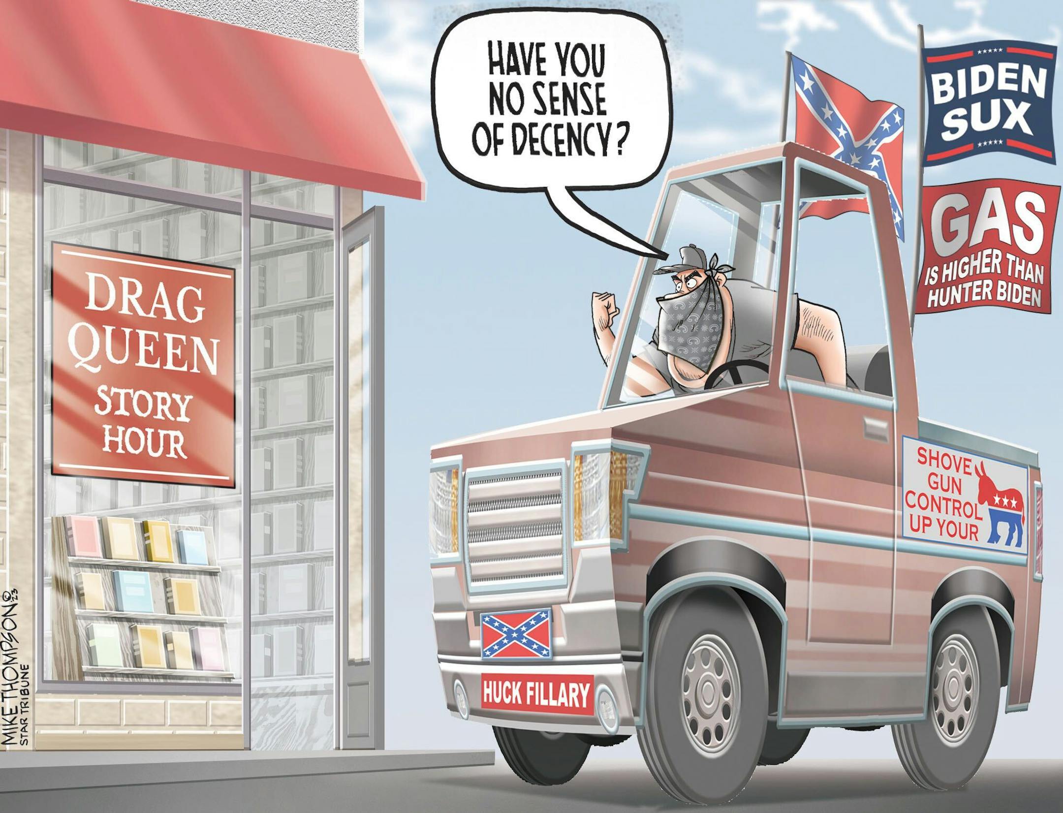 I had a cartoon in progress when news of additional charges in Trump's indictment in the Mar-a-Lago investigation broke Thursday evening. As often happens, I had to switch gears and start on a different idea. I have a graveyard of half-completed cartoons that I abandoned when big news broke or the story changed in the middle of working on a cartoon. I generally use Photoshop to build the backgrounds of my cartoons, draw the figures the old-fashioned way, then scan them into my laptop and color them. Here's a copy of where I left off. Maybe I'll be able to finish it for use next week — barring another Trump indictment.