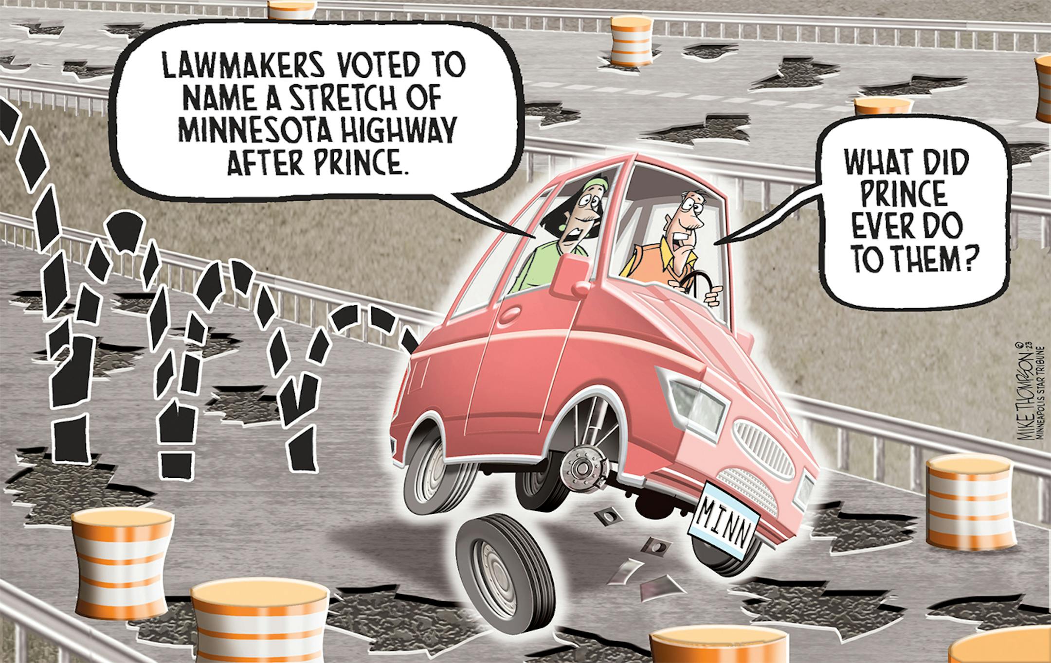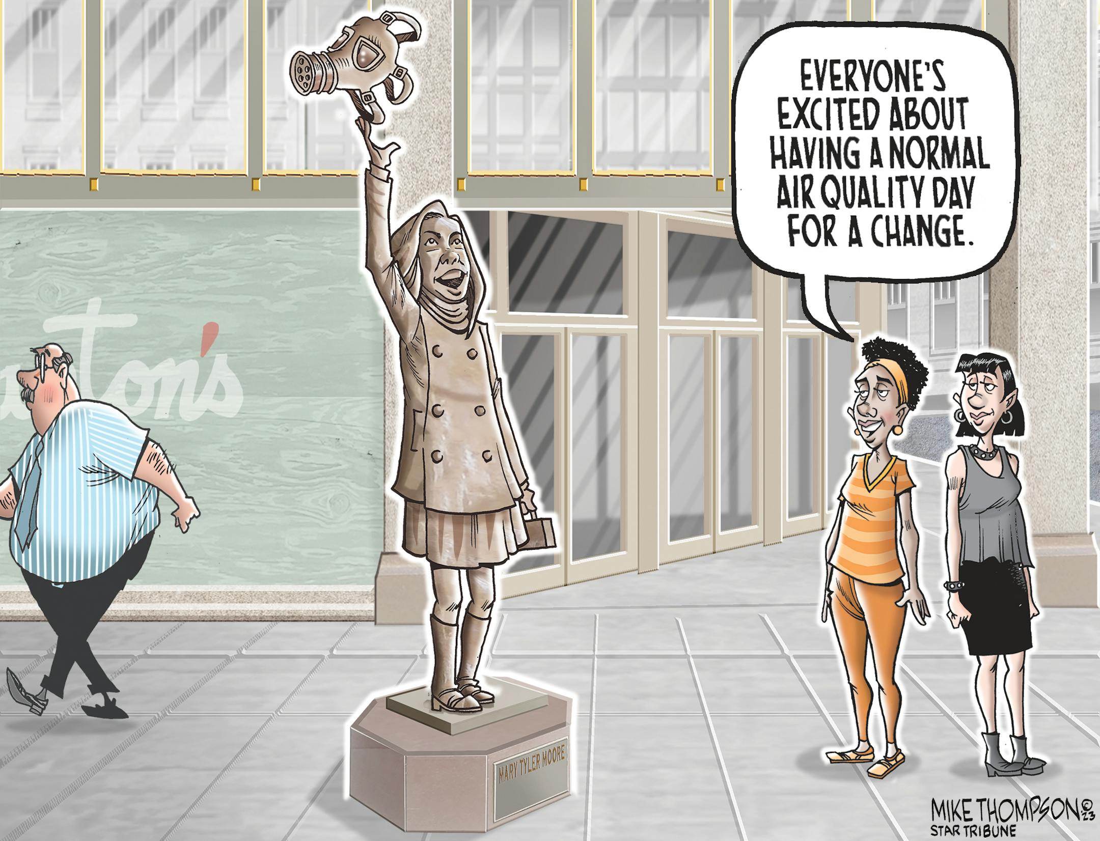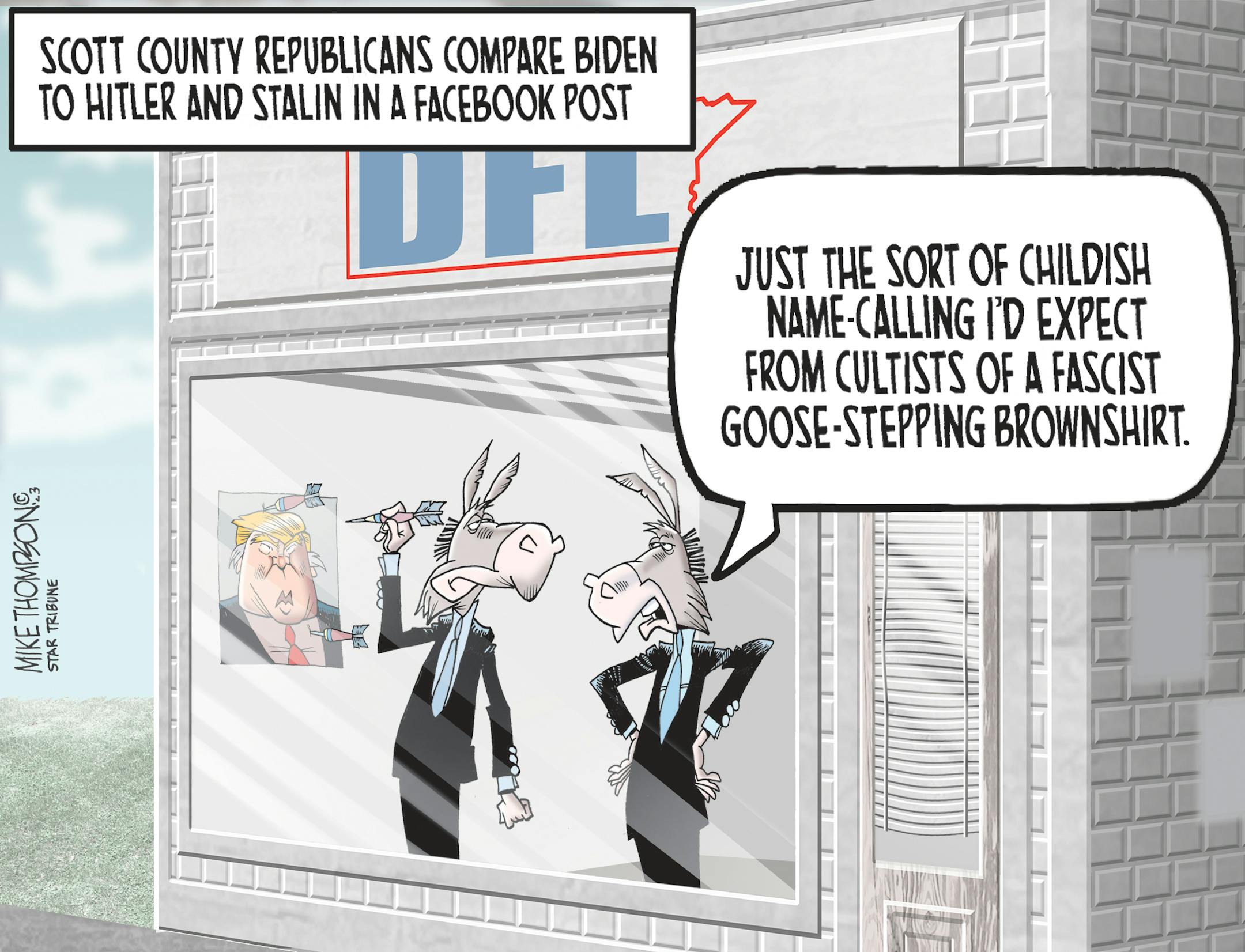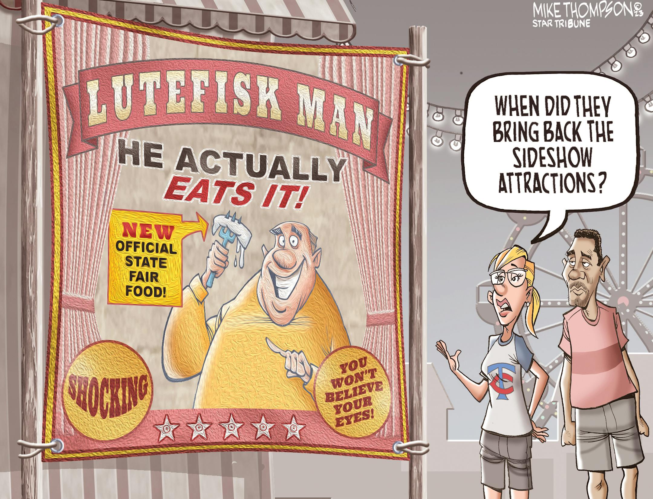 I had a cartoon in progress when news of additional charges in Trump's indictment in the Mar-a-Lago investigation broke Thursday evening. As often happens, I had to switch gears and start on a different idea. I have a graveyard of half-completed cartoons that I abandoned when big news broke or the story changed in the middle of working on a cartoon. I generally use Photoshop to build the backgrounds of my cartoons, draw the figures the old-fashioned way, then scan them into my laptop and color them. Here's a copy of where I left off. Maybe I'll be able to finish it for use next week — barring another Trump indictment.