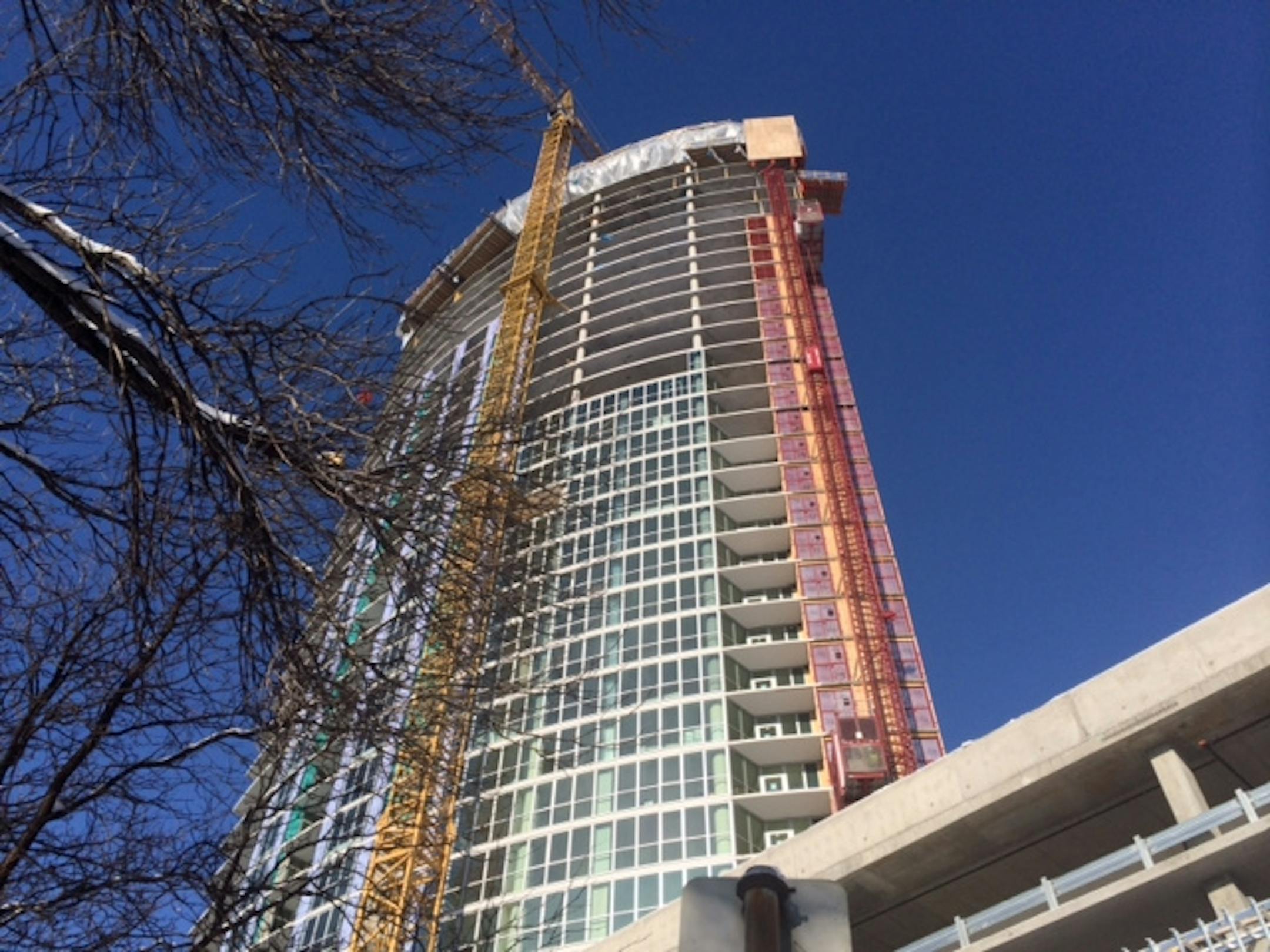 The 36-story 354-unit apartment building has reached roughly the halfway mark, with plans to open in early June of 2014. Off-site leasing will begin in January.