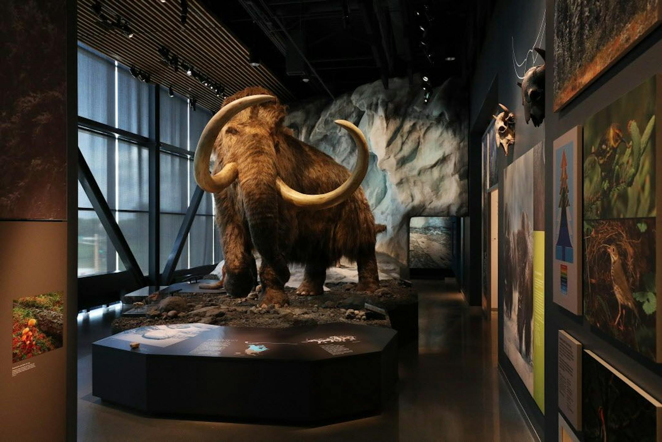 Where ya been all my life, woolly? Every single one of the thick hairs on his body (yes, the model is based on a male mammoth) was individually glued on by artists at Blue Rhino Studio in Eagan. He's positioned in front of a giant wall of ice, alongside another extinct animal, the giant beaver, plus an Ice Age survivor, the musk ox — which apparently was intelligent enough to find ice-free refuges from predators, including humans.