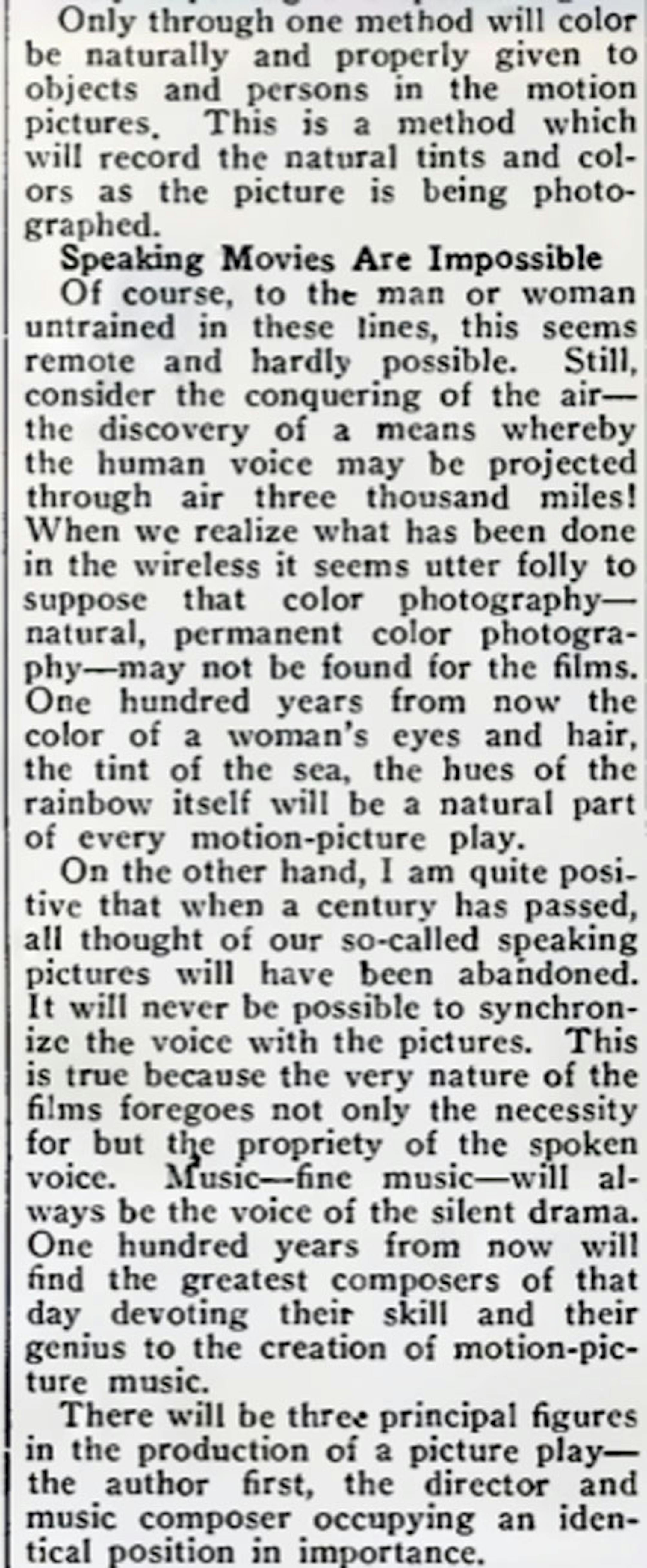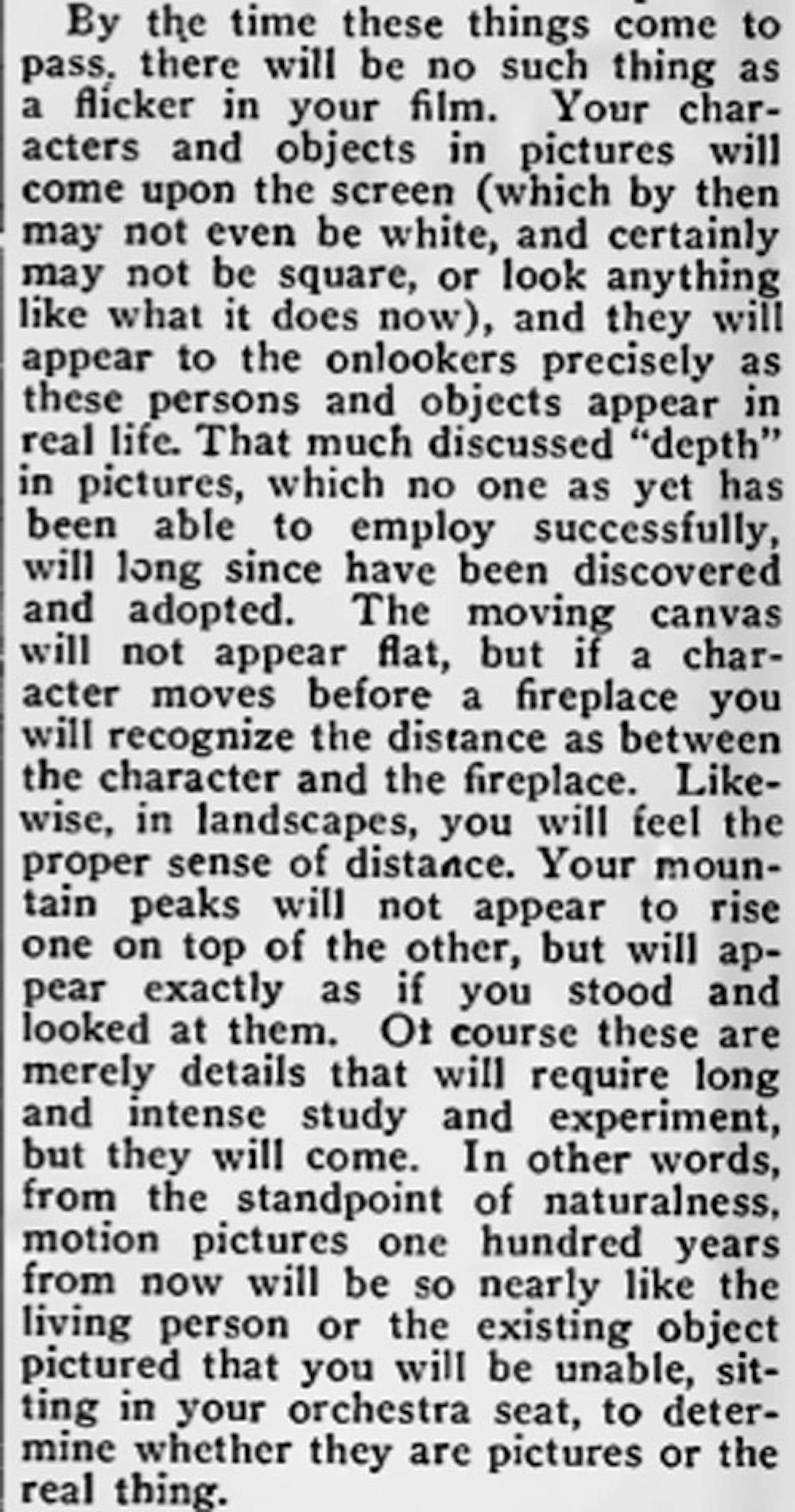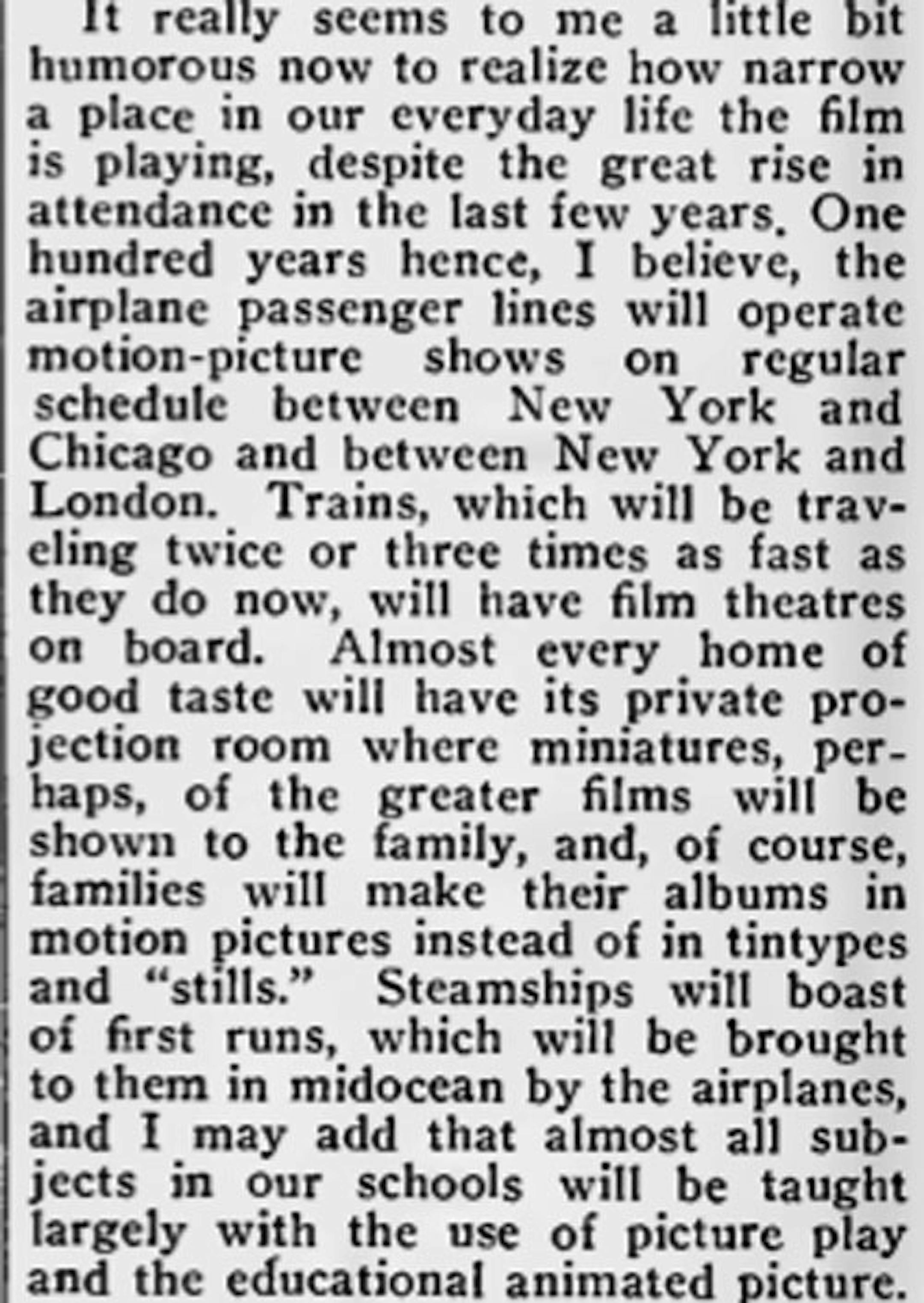 Which brings us to this set of predictions from Film Daily, 1924. Let's see what they thought the movies of 2024 would be like. First, a mixed bag: