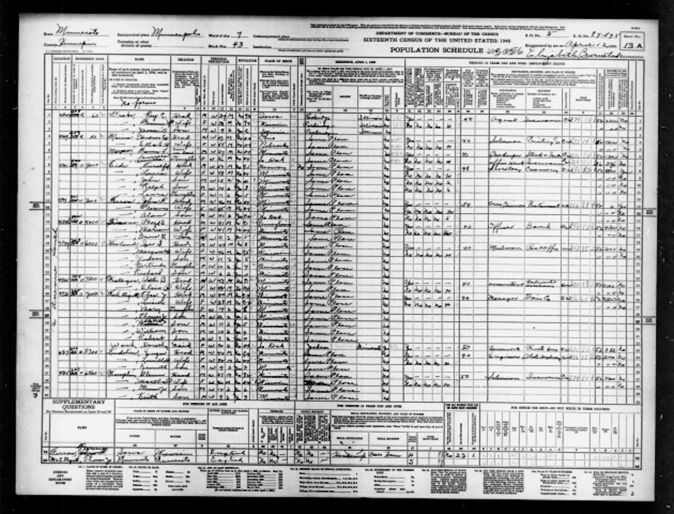 The census reports also revealed something about house values and relative affordability. In 1940, the Minneapolis house I now live in was valued at $9,000. Adjusted for inflation, that would be $138,371 in 2010 dollars. Even with the prolonged market downturn, the tax assessor says our house is worth more than twice that now, so that says something about the value of real estate in the extremely long term. The original homeowner earned $4,500 in 1940, exactly half the value of the home --.and about $69,000 in 2010 dollars. While now most of the people in neighborhood feel the need of two professional incomes, in 1940 families got by on one, and the most common professions were clerks, stenographers and insurance salesmen. Lots and lots of insurance salesmen.