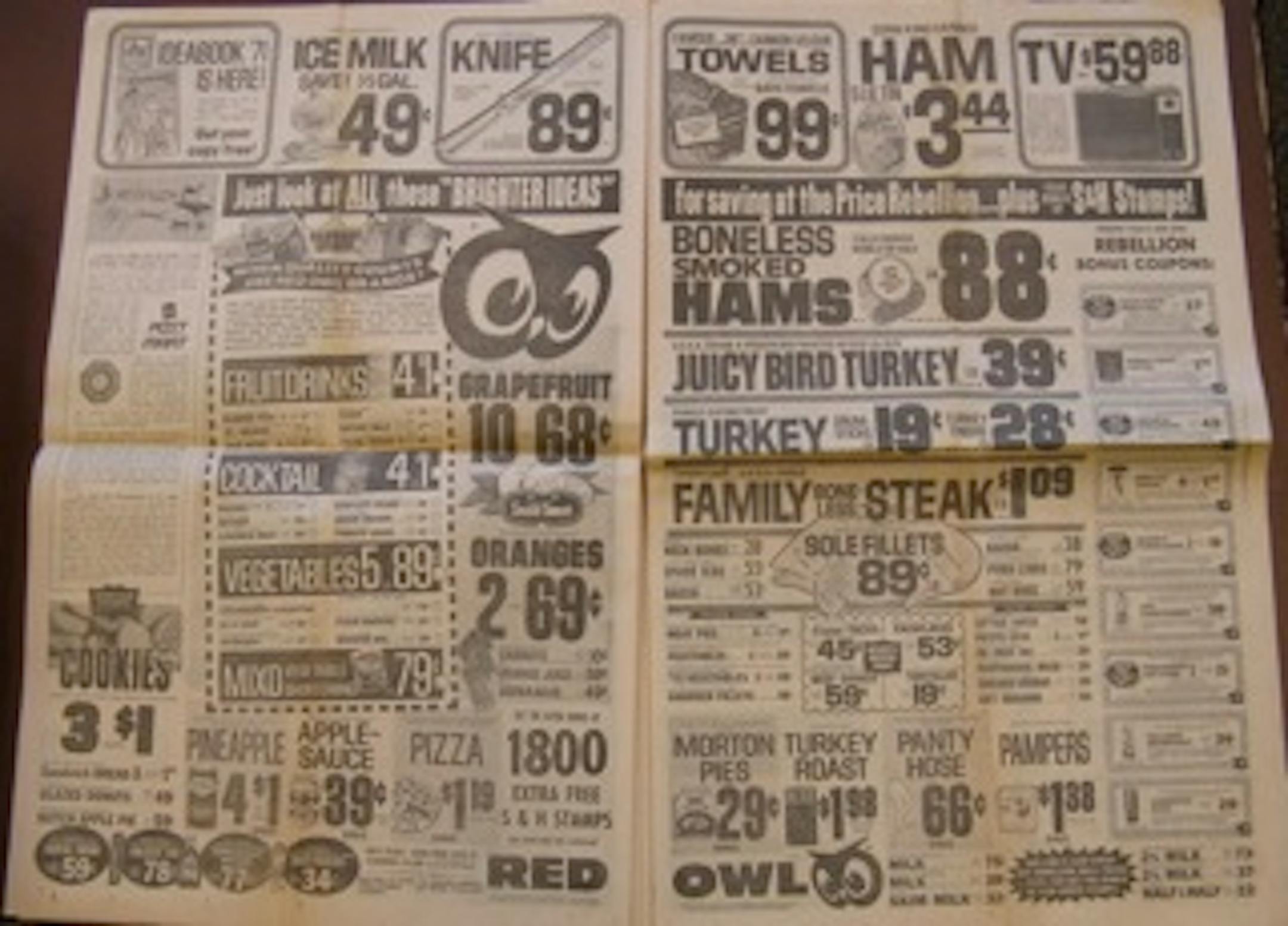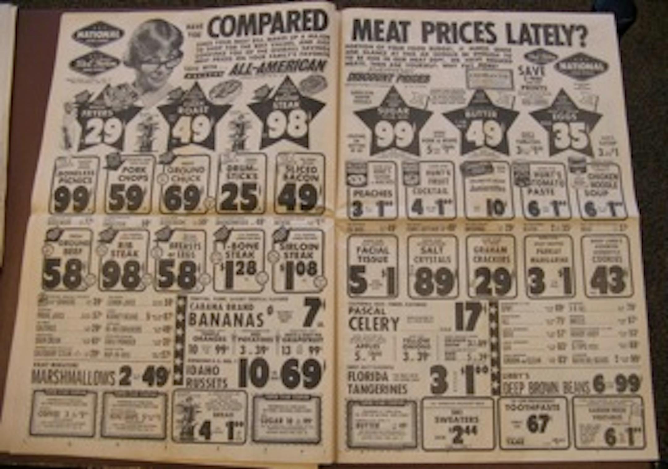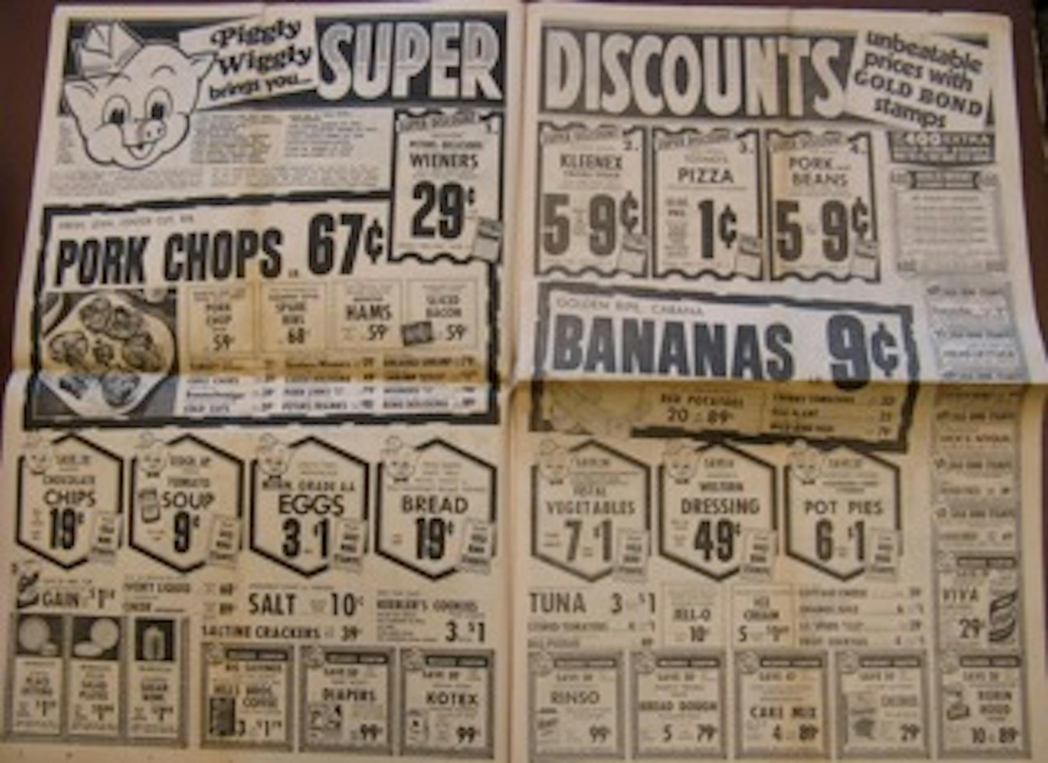 The Piggly Wiggly price barrage, circa 1971. Yes, bananas were 9 cents per pound.