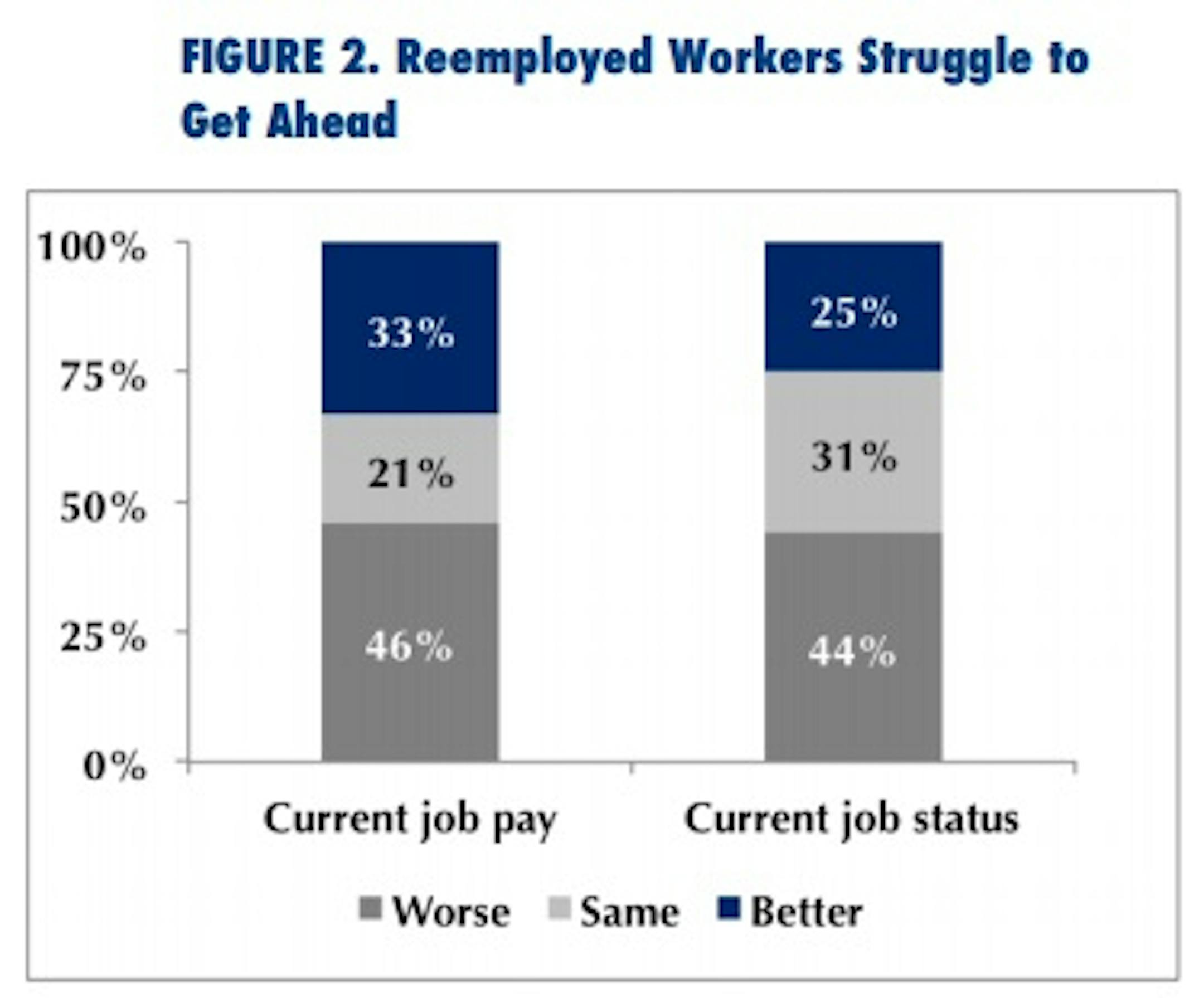And almost half of workers who were laid off and found a new job are being paid less, in a lower-status job.