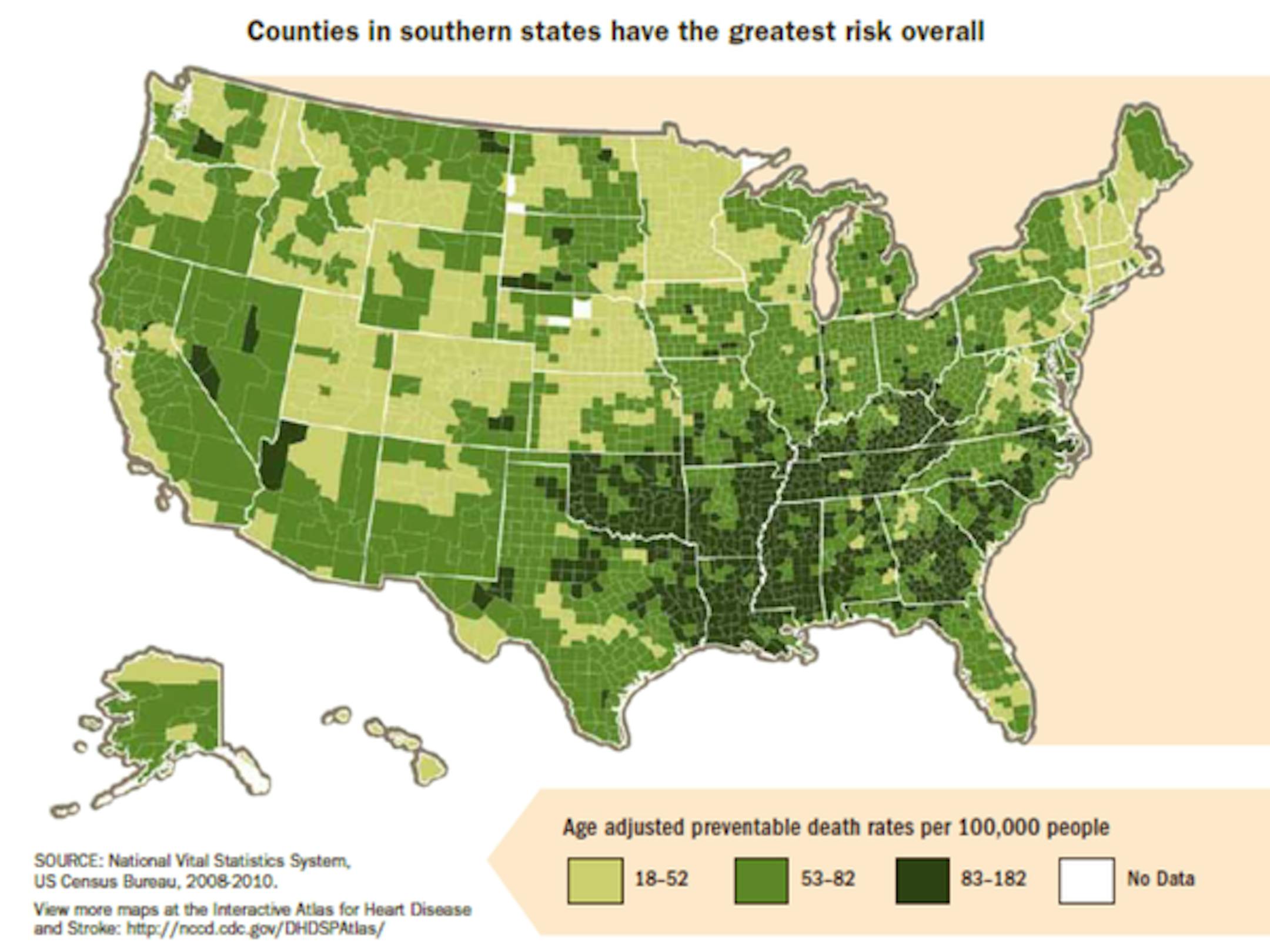 In 2010, the states with the highest avoidable-death rates were primarily in the South, including Mississippi, Oklahoma, Tennessee, Louisiana and Washington, D.C.