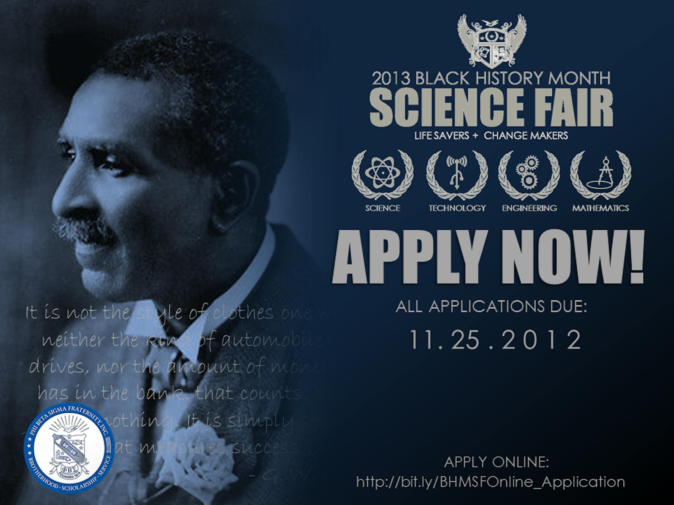 The application for participating in the 2013 Black History Month Science Fair is available now. Interested students may apply online here: Online Application If you would like to download a printable version of the application it is available here: http://bit.ly/BHMSFApplication