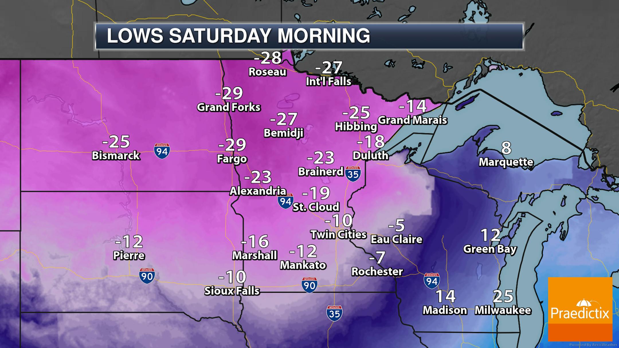 This is not how many want to start the new year, but 2022 is coming in COLD. By Saturday morning, air temperatures will be around -10F in the metro, but in the -20s as you head into northern Minnesota. Some areas could even approach -30F.
