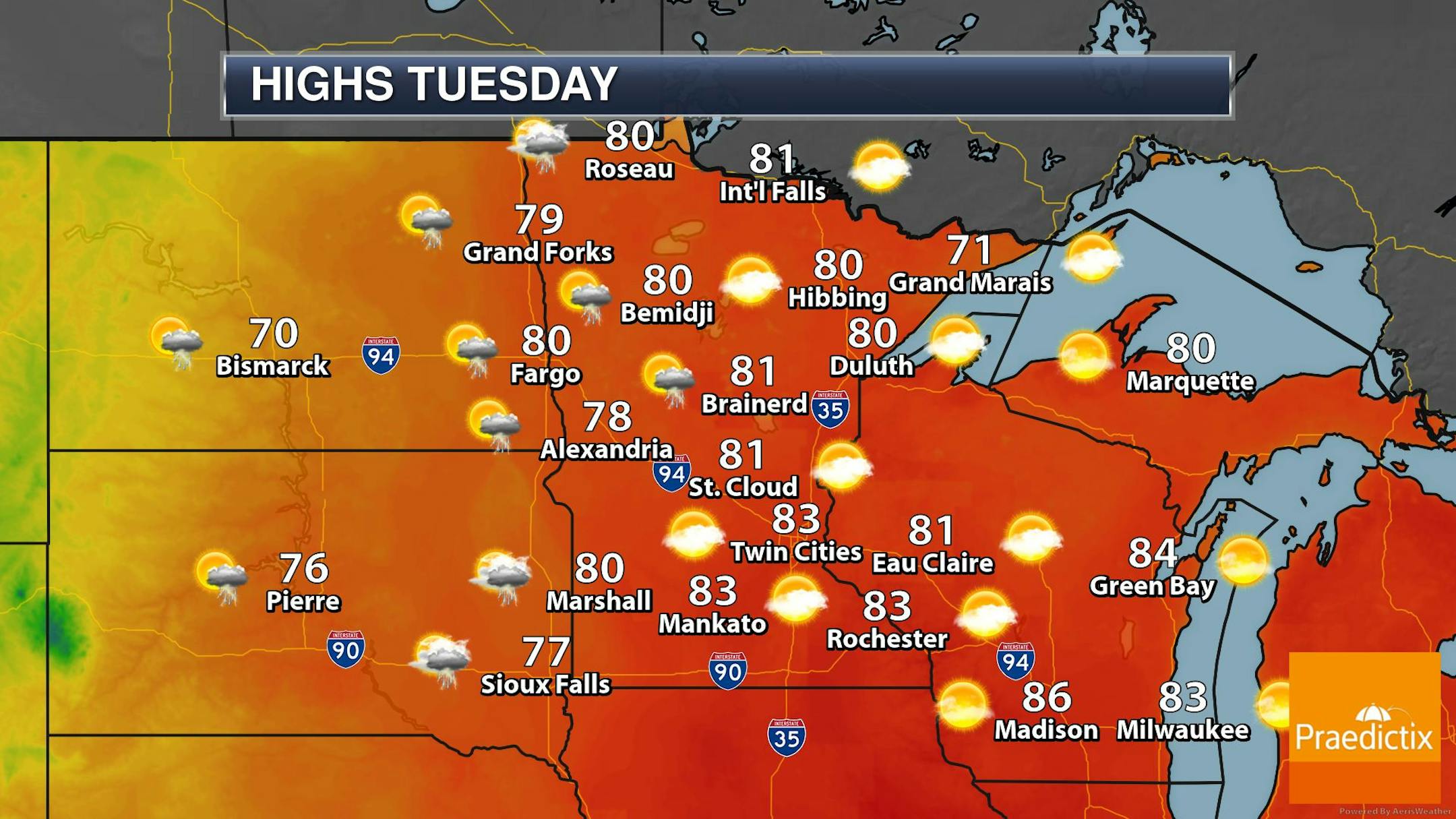 - Monday was another record-setting day for Minneapolis reaching 89F.