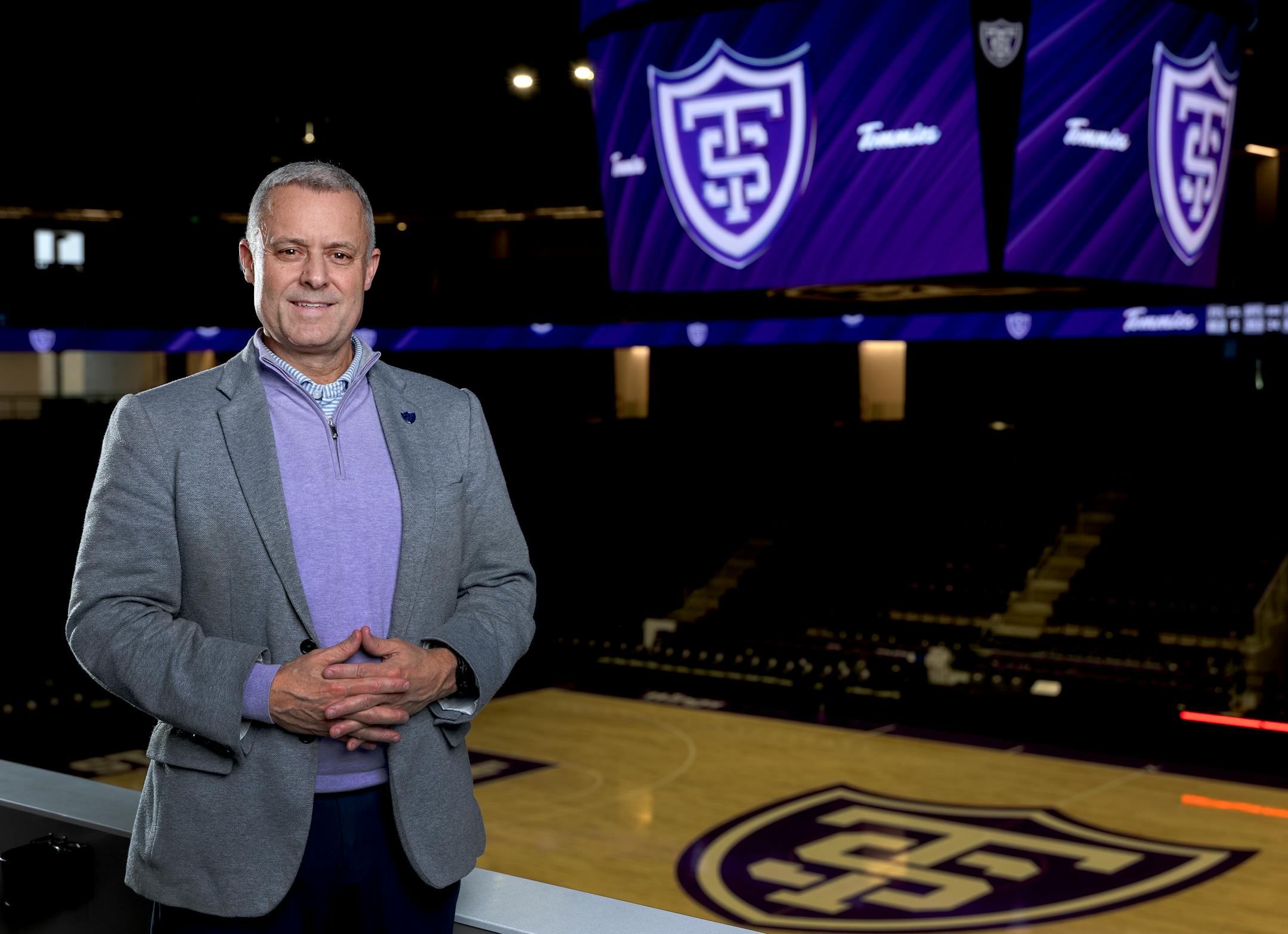 A decade and a half later, Esten is sitting courtside at the Lee & Penny Anderson Arena, the $183 million facility and crown jewel symbol of St. Thomas’ unprecedented leap into Division I athletics.