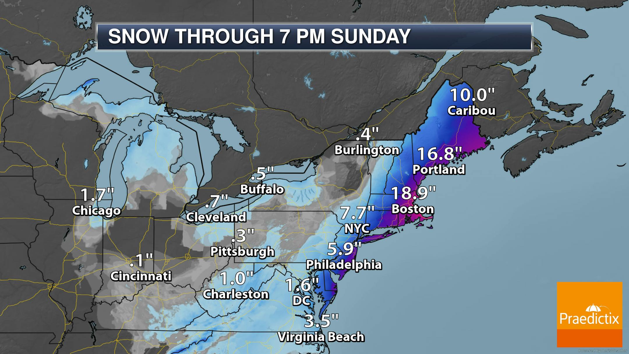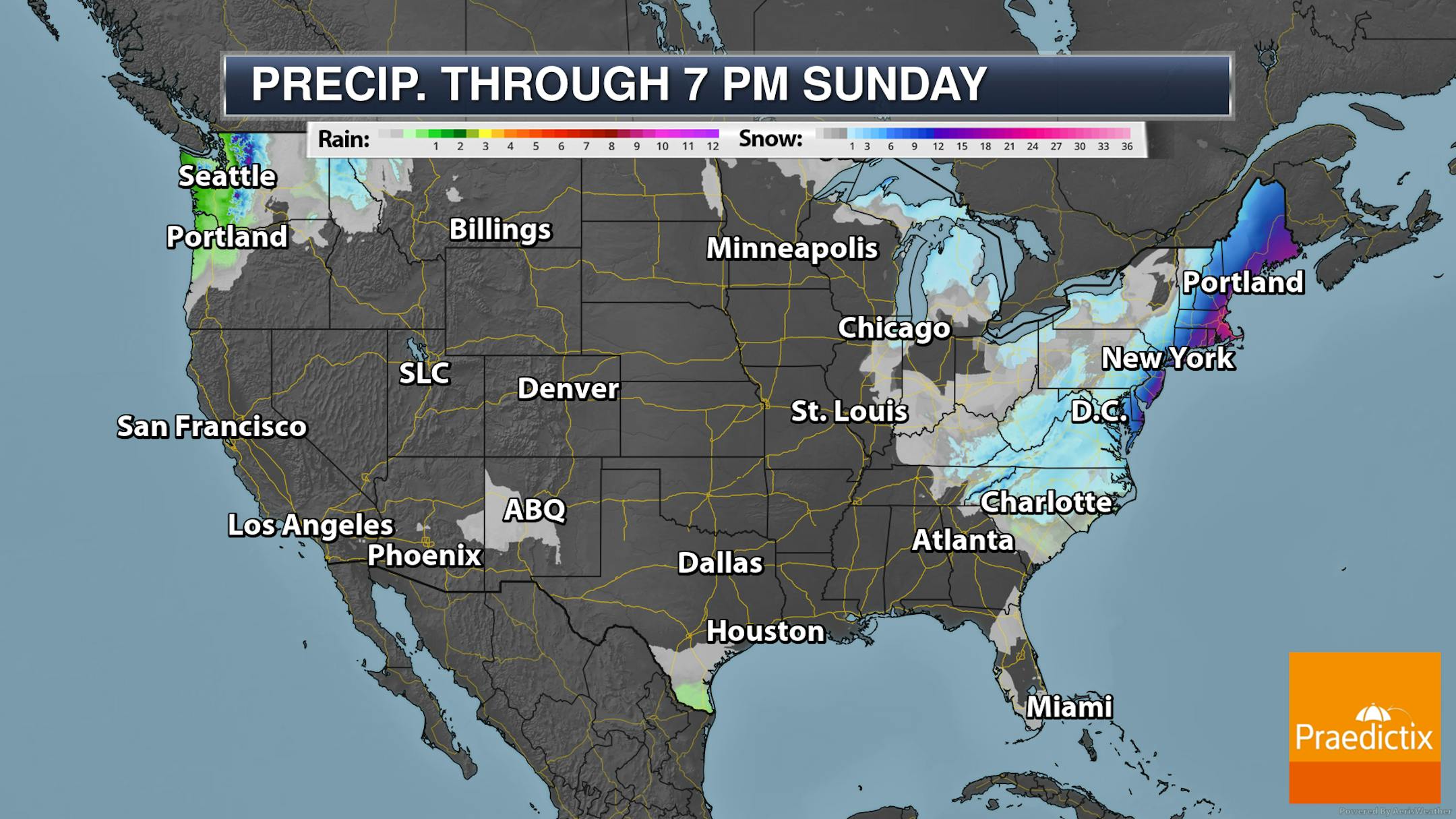We'll then warm to the 30s on Monday before the next cold front moves in, bringing dropping temperatures during the day Tuesday and then highs only in the single digits and teens Wednesday and Thursday. No snow is in the forecast, but we will be tracking a potentially large storm passing to our south during the middle of the week impacting areas like Kansas City, Chicago, and Detroit.