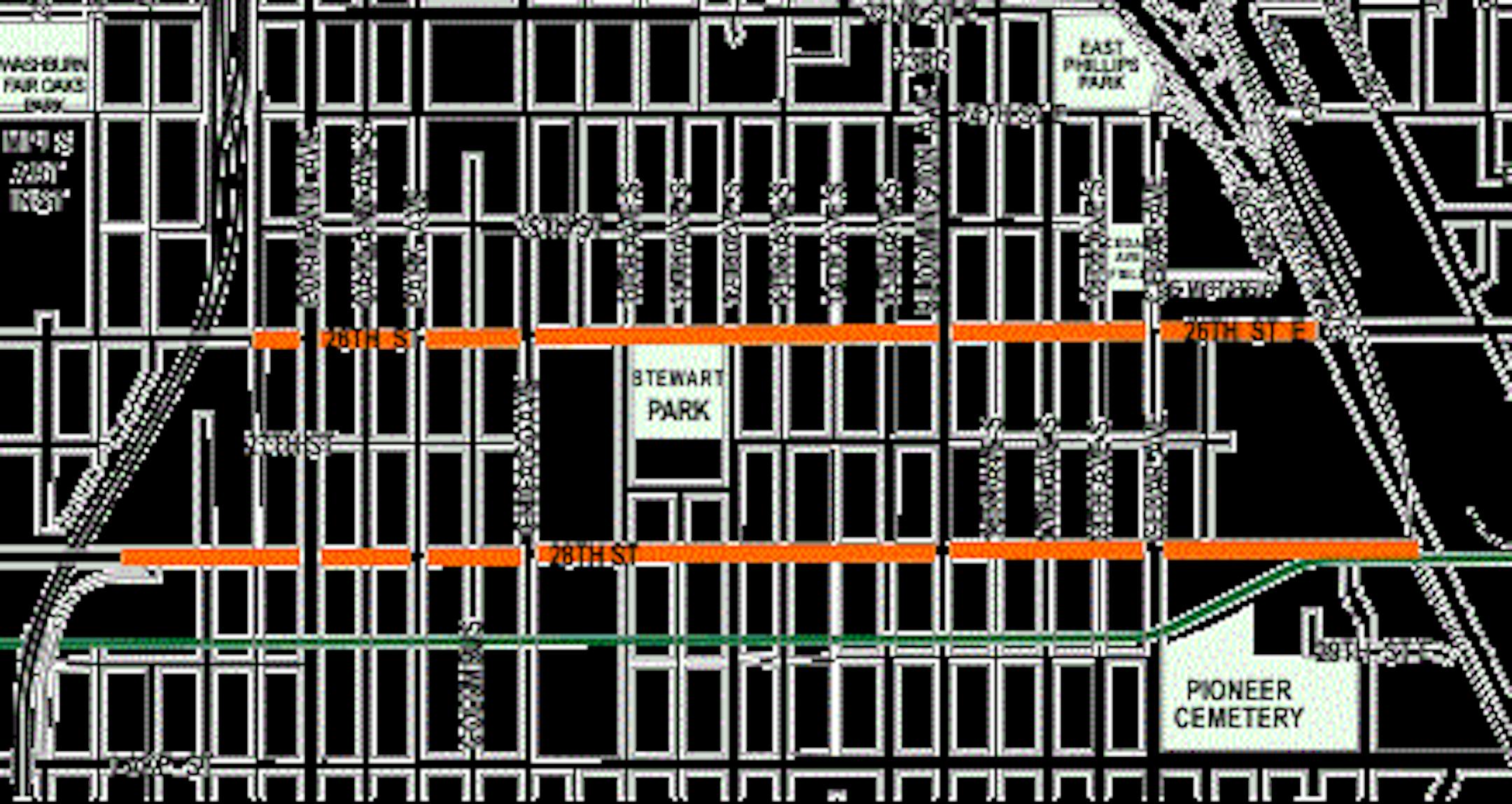 The proposal covers 32 blocks on the two streets lying between Portland and Cedar avenues. That stretch such includes major businesses as Wells Fargo and the Chicago Avenue medical complex. Additional planning will flesh out the design between Cedar and Hiawatha avenues.