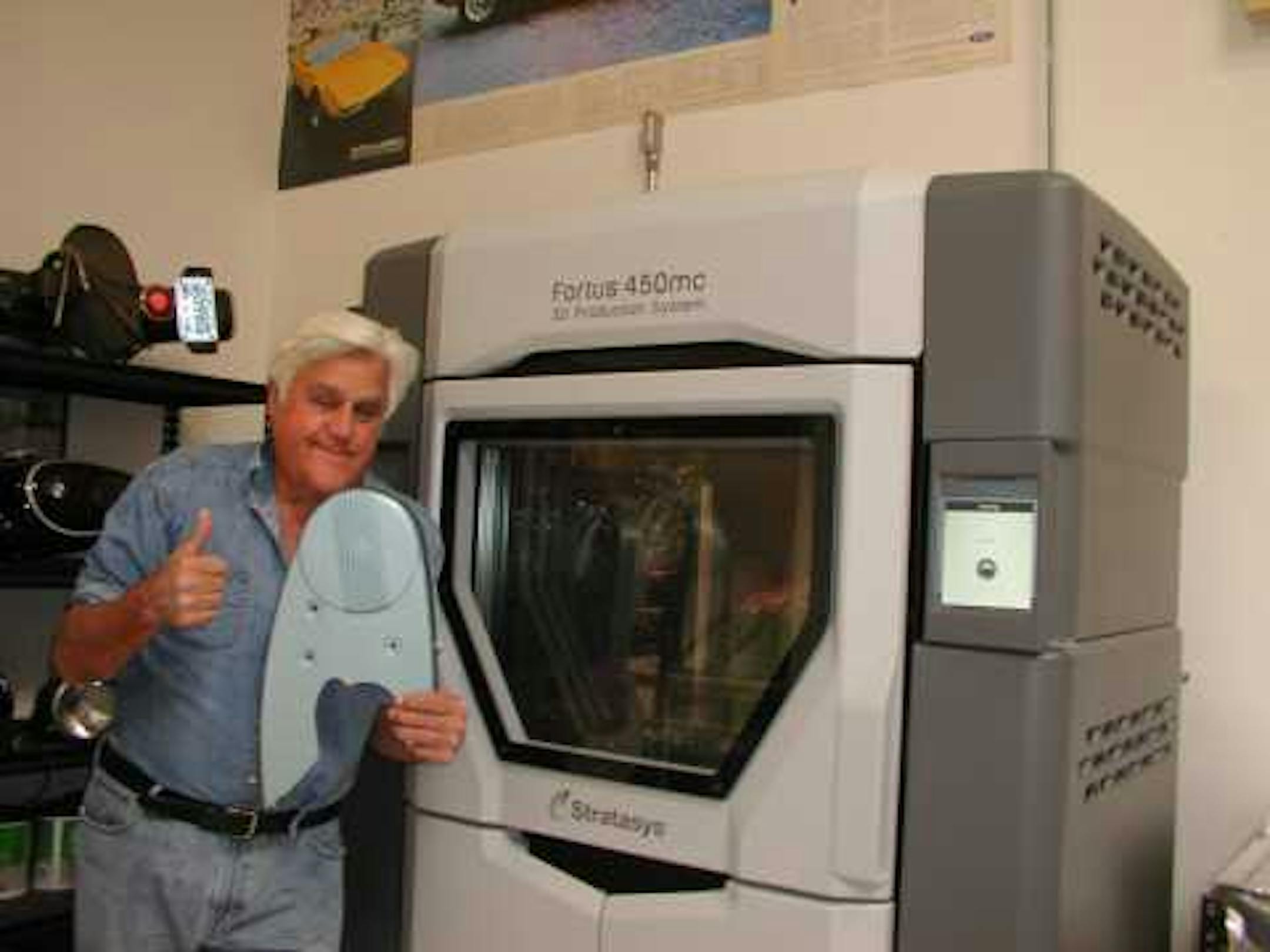 "As a lover of classic cars, I'm always looking to push the boundaries of what's possible in creation and re-creation of these vehicles — and 3-D printing is integral to this process," Leno said in a statement. "After working with Stratasys and Stratasys Direct for years to drive the ultimate in 3-D printing innovation, I'm really excited about this new Fortus machine and where it takes us next."