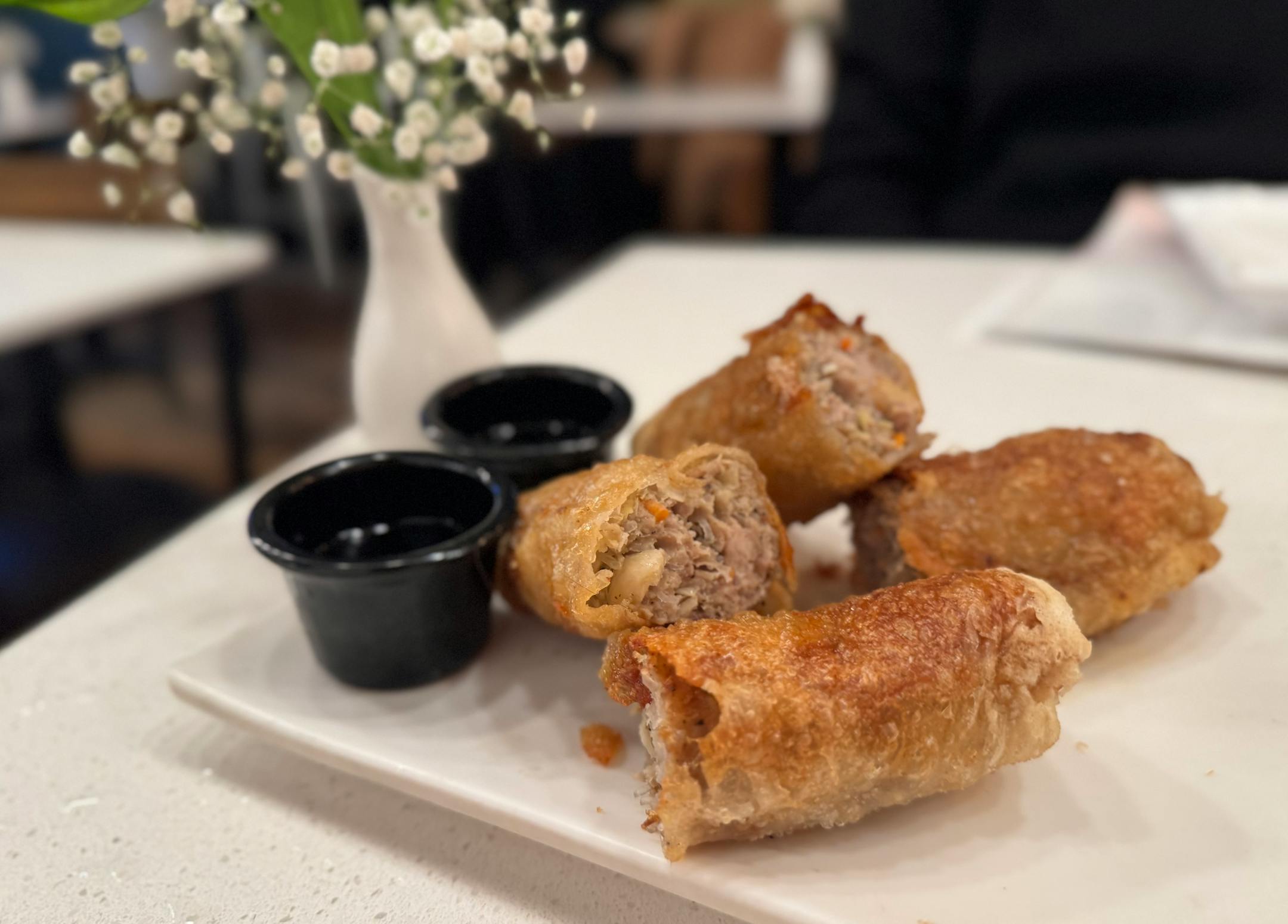 While it might not be served on a stick like at the fair, the family behind the giant egg roll stand Em Que Viet features its most famous dish at both of their restaurants. That version features two large egg rolls ($13) in an order. And while not as giant as the fair version, rest assured that they’re still sizeable and generously stuffed with that ground pork filling with carrots, cabbage and bean thread noodles that we have come to love. All of this encased in Em Que Viet’s signature, thick bubbly golden wrapper, of course.