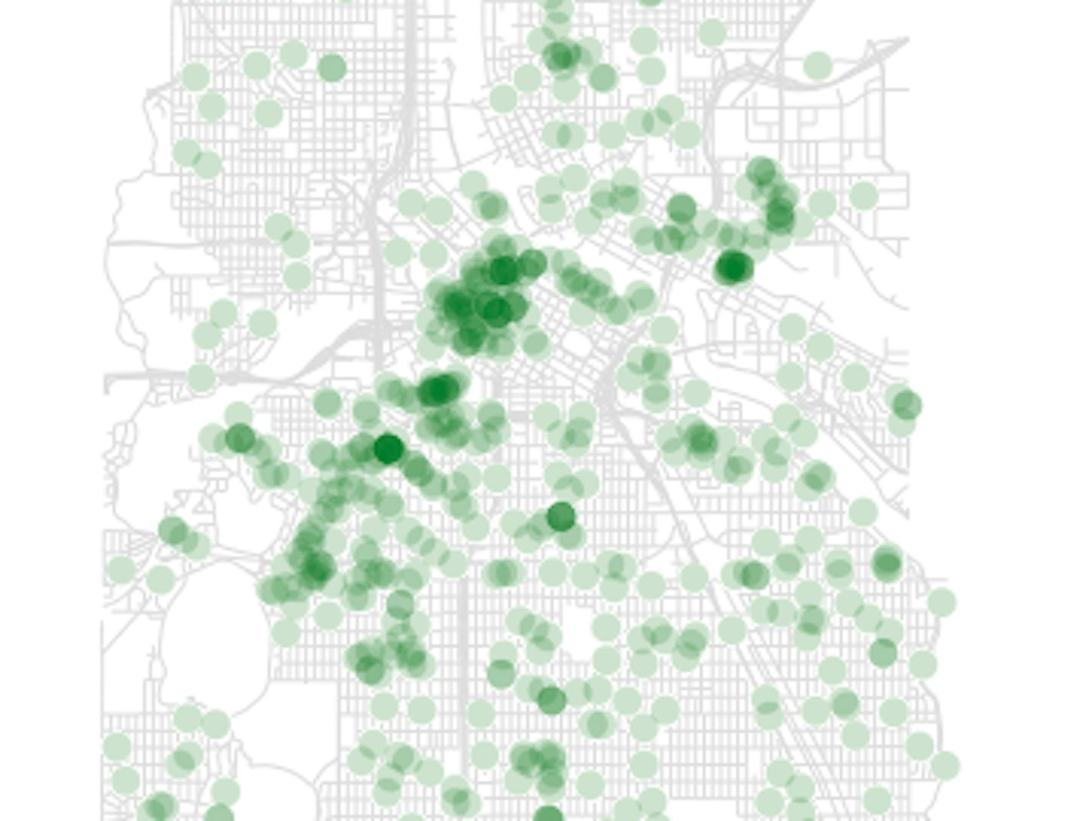There are fewer graffiti calls in high-crime areas of north Minneapolis compared with other corners of the city, for instance. The calls are more prevalent in areas with large artist populations, city staffers said. Other discoveries are more straightforward: Commercial food safety complaints match closely to areas with high numbers of restaurants, like downtown and Lake Street.