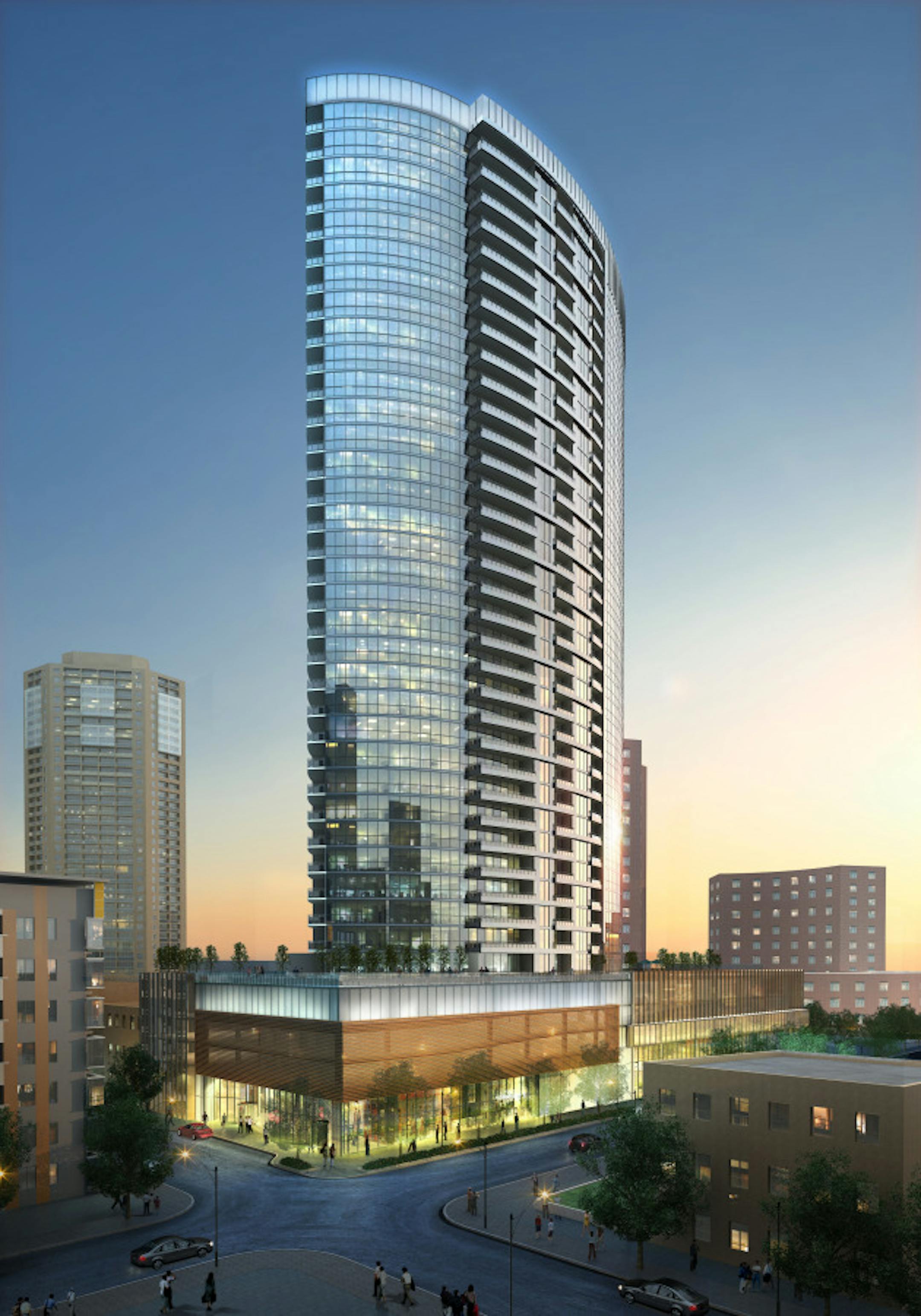Brian Gordon, vice president of Chicago-based Magellan Development, said the proposed complex is geared toward young professionals and will have a 24-hour doorman, outdoor pool, movie theater and business center. The site in question is at 14th Street and LaSalle, a parking lot near Loring Park, a high-density residential neighborhood along the south edge of downtown Minneapolis.