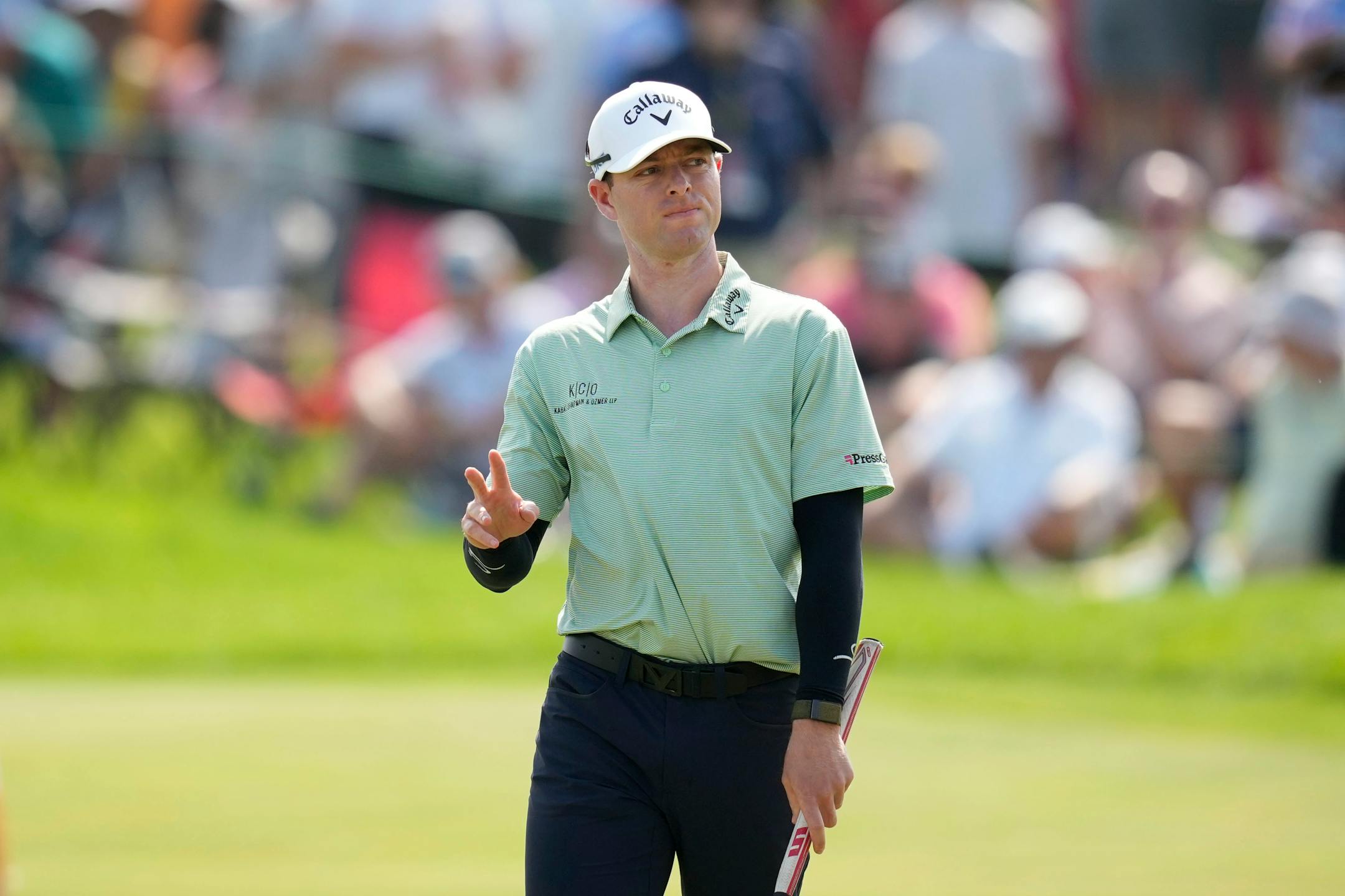 “It was my idea to play,” said Greyserman, who golfed at Duke and on the Korn Ferry Tour. “Honestly, it was moving so slow there on 18. I was kind of getting bored. It’s so hot outside.”