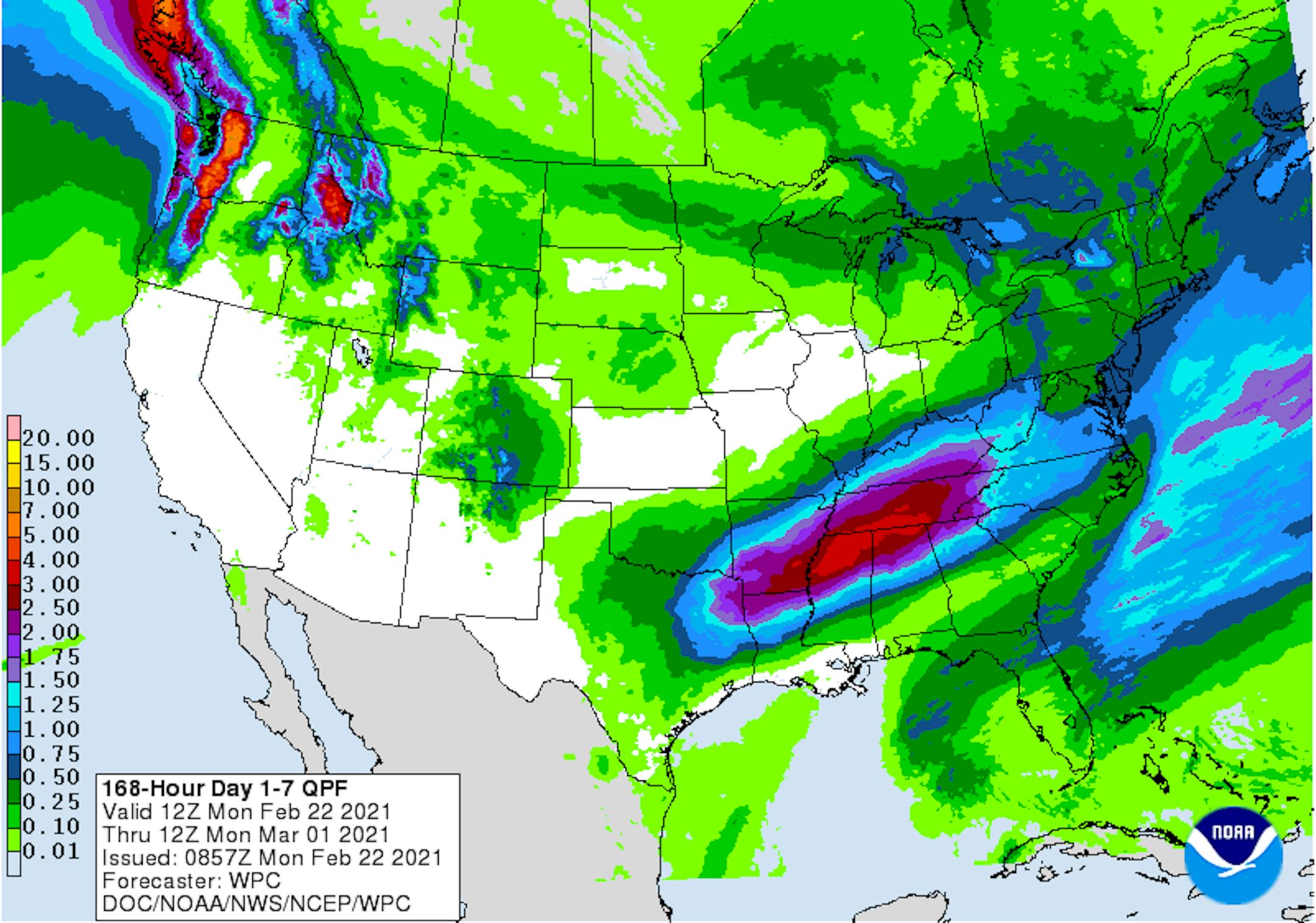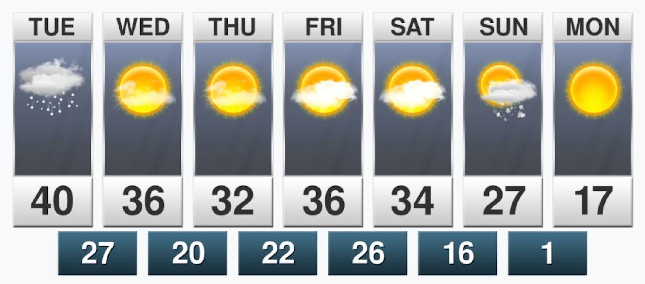 Here's the extended weather outlook for Minneapolis over the next 5 to 7 days. We'll have another shot at 40F on Tuesday, which will be nearly +5F to +10F above average for the end of February; more typical of mid March. Highs through the rest of the week should warm into the mid 30s, which will be close to if not slightly above average for this time of the year. Our next best chance of snow arrives late weekend with a slight cool down expected as we slide into March.
