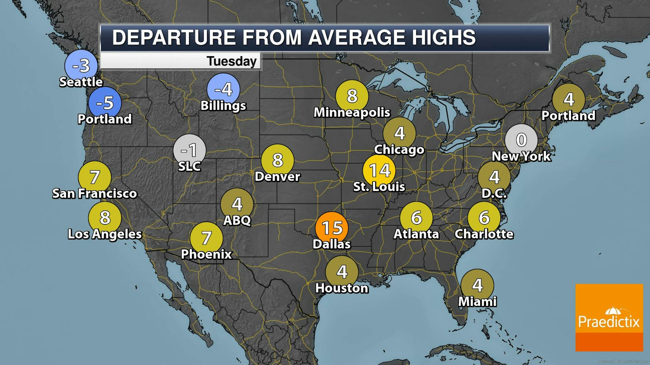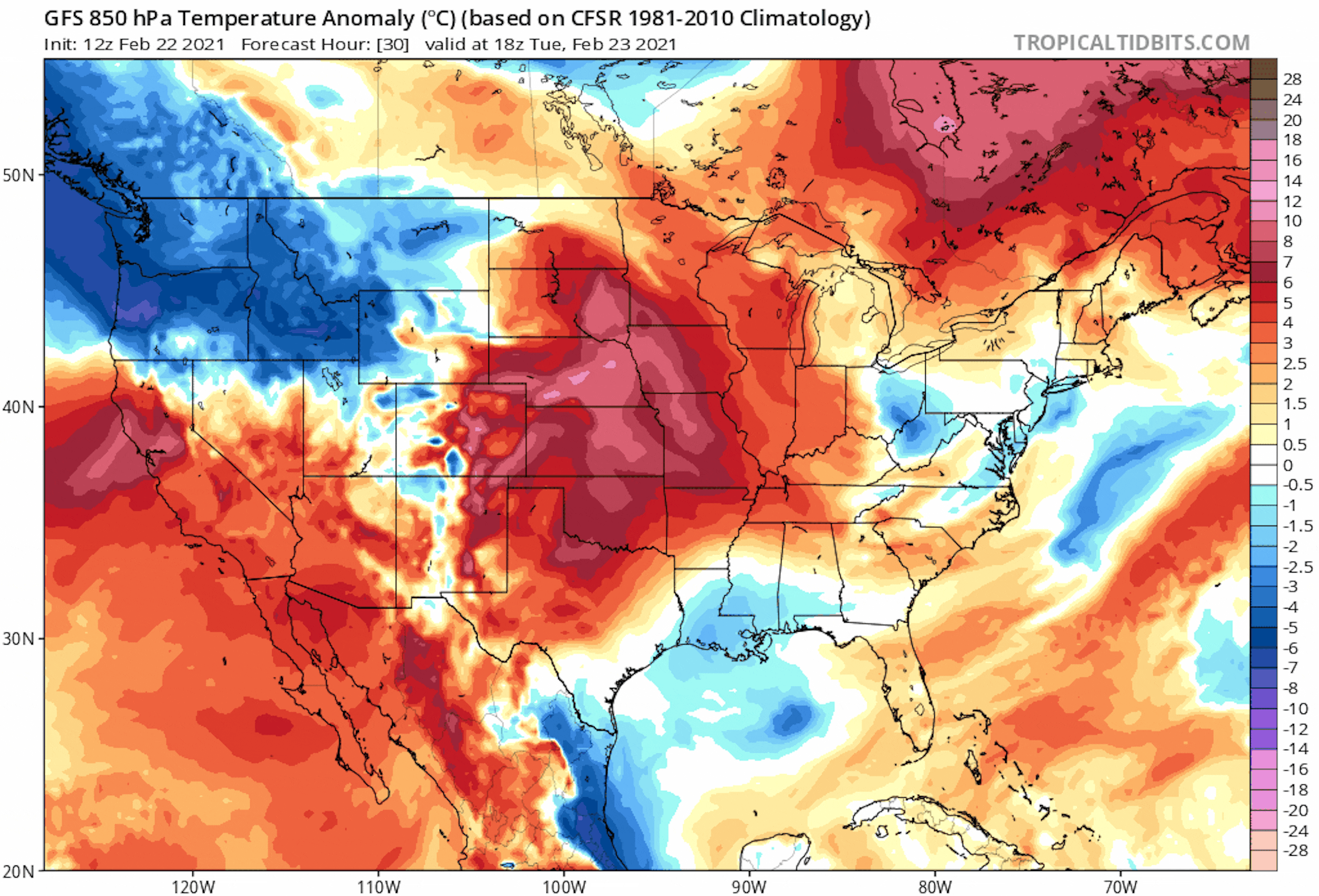 Here's the 850mb temp anomaly from midday Tuesday to midday Thursday. Note the warmer oranges and reds early in the loops, those are the milder temps that much of the eastern half of the nation will continue to see through midweek before a slight cooldown moves in later this week. The good news is that the cooler air won't be anywhere as cold as it was over the last couple of weeks.