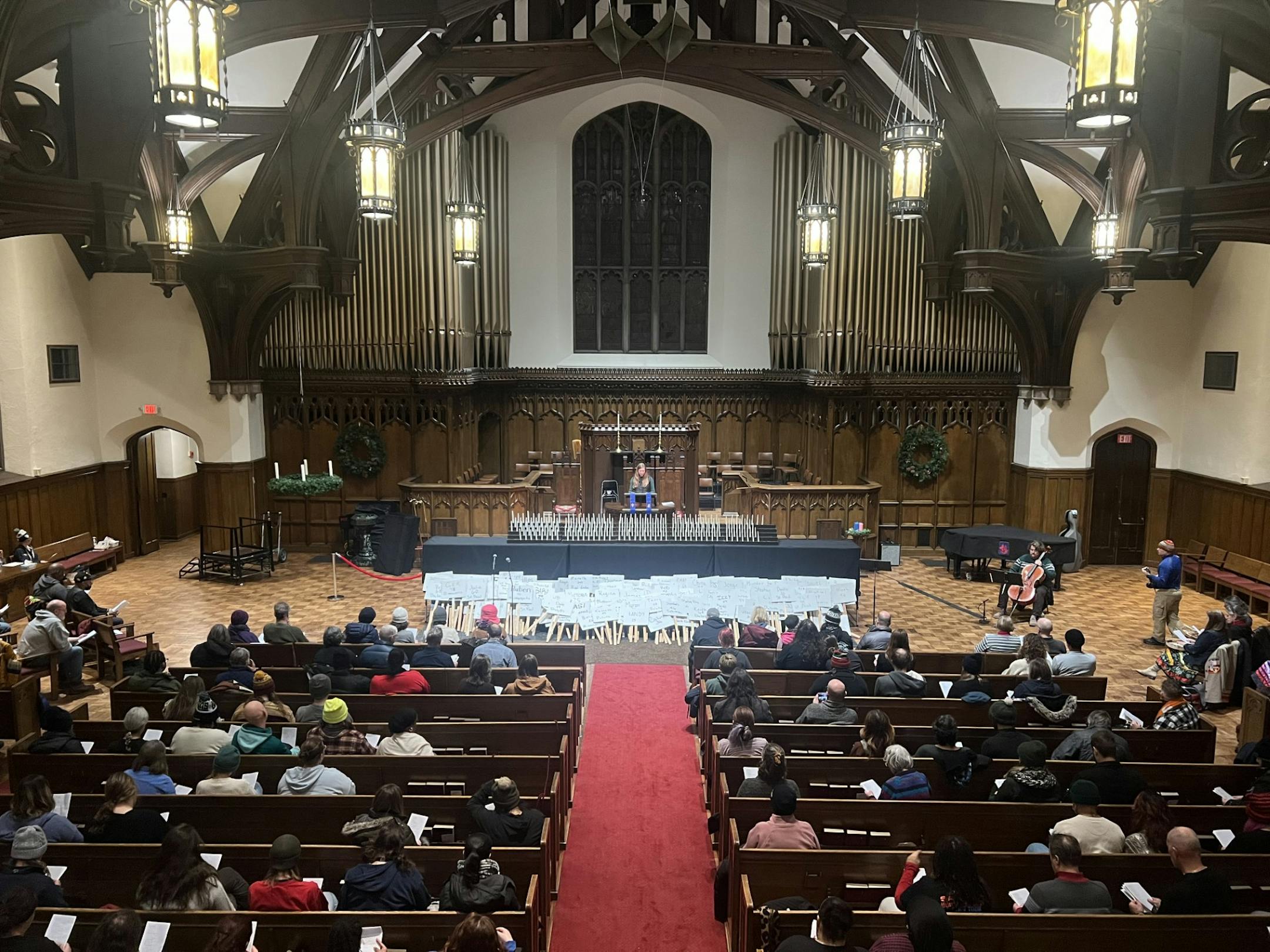 With temperatures around 15 degrees, snow falling and wind howling, about 170 people completed the march before a remembrance event at Plymouth Congregational Church that drew more more than 200 people to the pews.