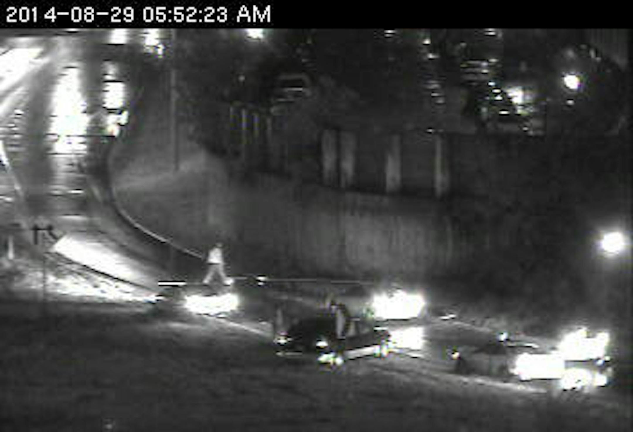 5:50 a.m. update: Downtown freeway ramp blocked by fallen light pole