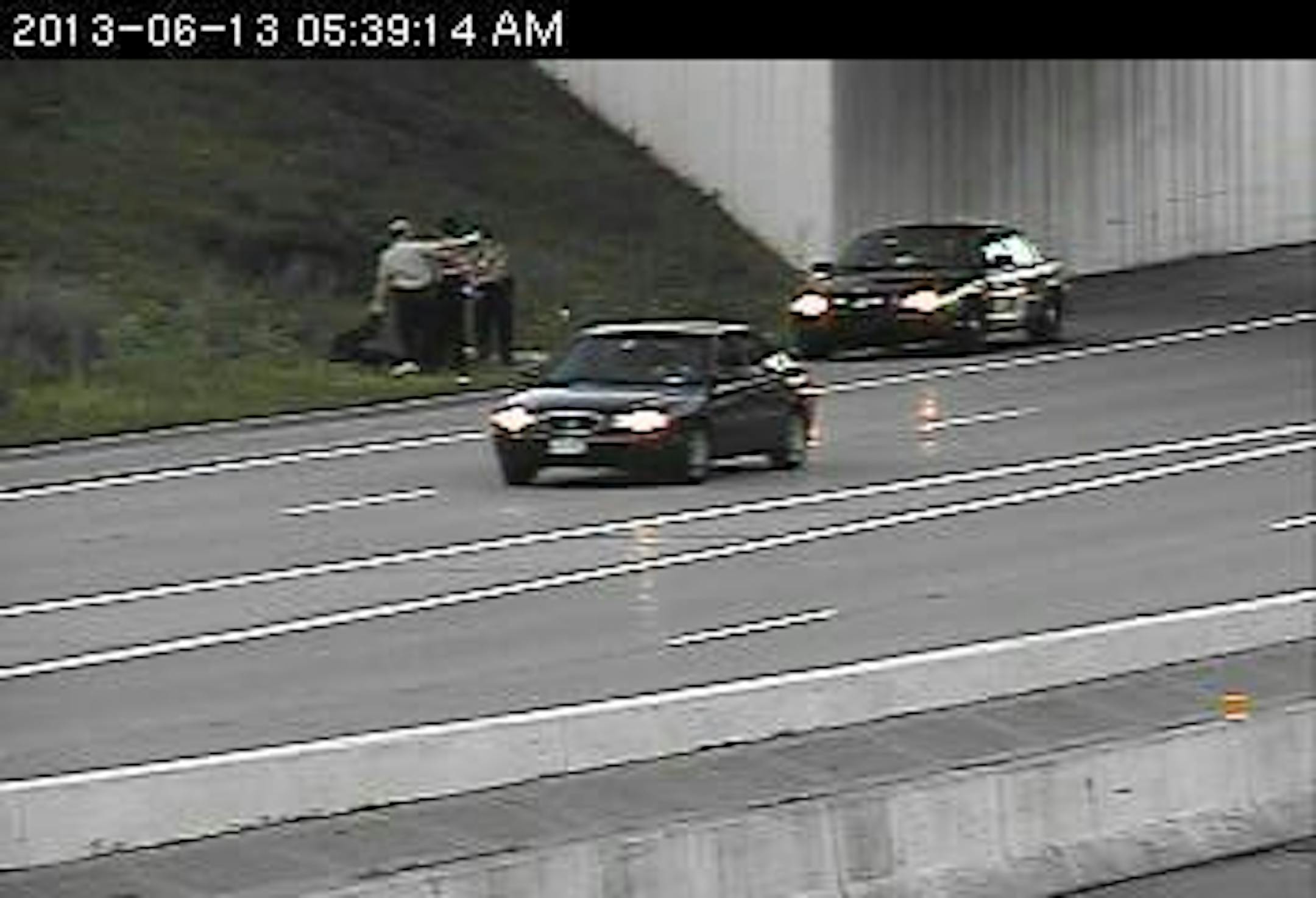 I just watched at the State Patrol put a man in the back seat of a squad car on eastbound 394 at Glenwood. Now the activity is on the westbound side of things. Police are converging on a white vehicle parked under the overpass. An ambulance also is on the scene.