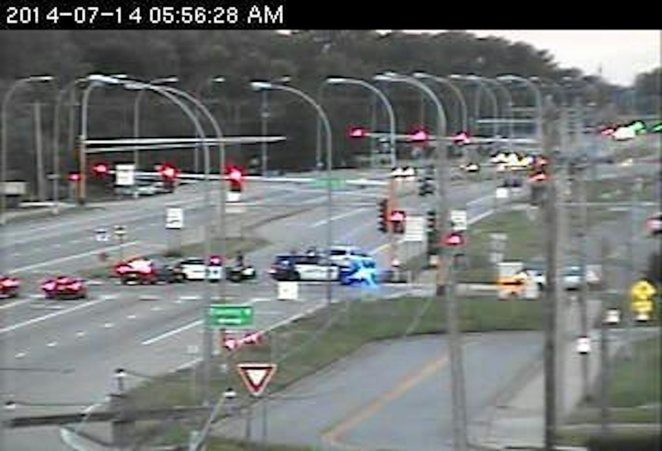This is the scene on southbound Snelling Avenue at County Road B in Roseville. As you can see, police have the road blocked as they deal with a crash.