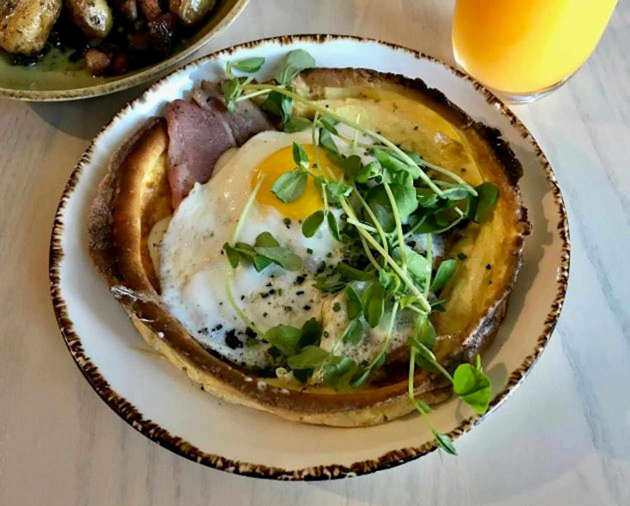 "It's kind of a cross between a pancake and popover," said our server. When the combination involves two of my very favorite things, how was I not going to order it? At brunch, chef Thomas Boemer skillfully utilizes the intense heat of his kitchen's showy, wood-burning hearth – and sturdy cast iron pans -- to fashion these gorgeous, puffed-up pancakes ($12 and $13). I love how the edges become thin and crisped, yet the rest of the golden pancakes remain tender and oh-so eggy. Turns out, they're an ideal vehicle for a wide range of brunch-friendly add-ons (kudos on that thick, tender slab of ham), and the black salt flourish is a swell touch. Truly, this is a seriously impressive way to brunch. 928 W. 7th St., St. Paul, 651-237-9630