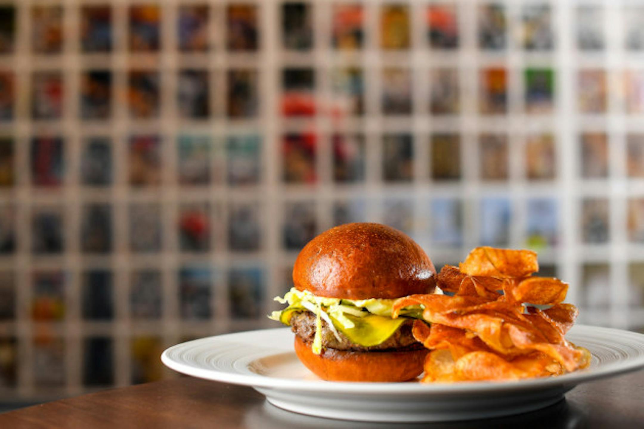 The burger: When the Walker Art Center debuted its gorgeous new restaurant last December, chefs Doug Flicker and T.J. Rawitzer included a (sorry for this) museum-quality burger on the menu. It starts with a doozy of a bun, baked on the premises and enriched with milk. The patty? An all-chuck formula (sourced from Peterson Craftsman Meats, the pride of Osceola, Wis.) that gets an overnight cure before it's fortified with butter, formed into thick-ish patties and nurtured in its own juices on the flat top grill to an ideal medium, bordering on medium-well. Cheese is appropriately salty American (two extravagant slices), and the pickles are superb. Finishing touches? A pair of sauces. It's an instant classic.