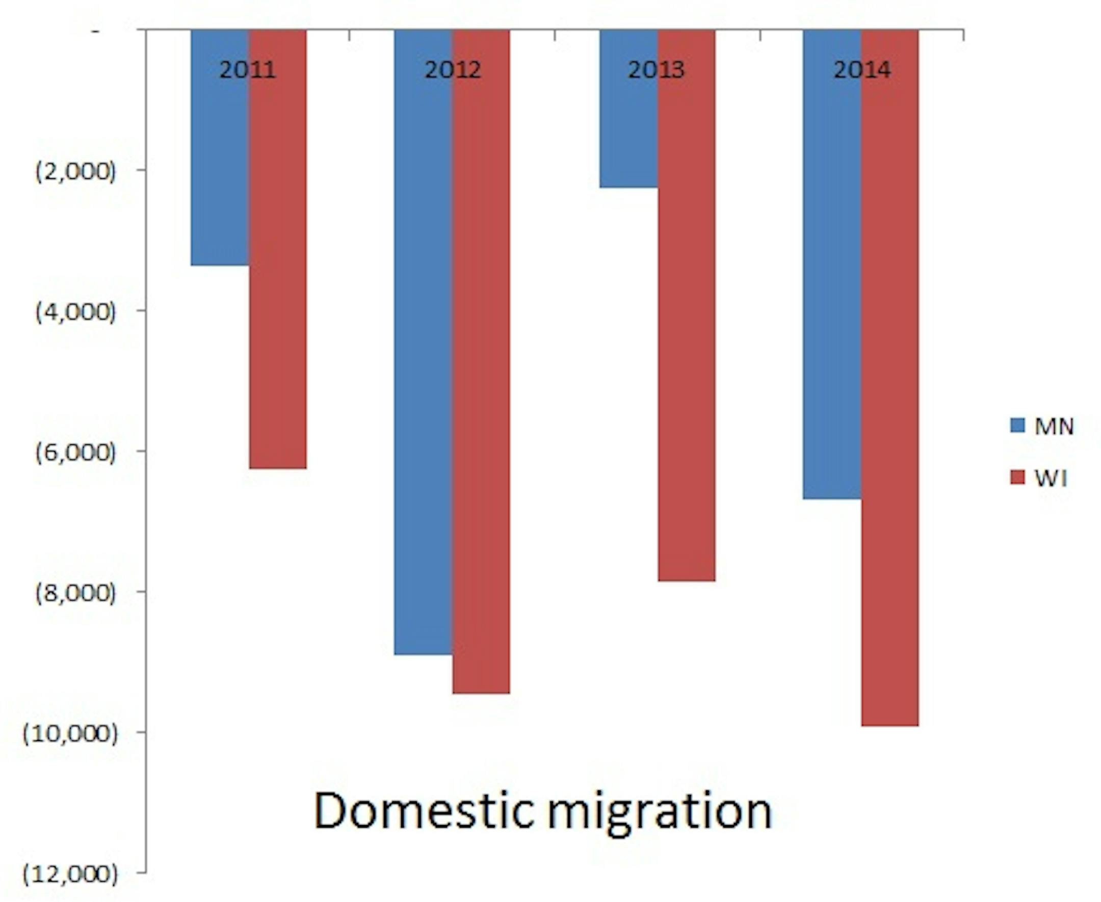5. So when you add up the higher number of births, lower number of deaths, lower losses to domestic migration and higher gains from international migration, Minnesota is adding twice as much population as Wisconsin.