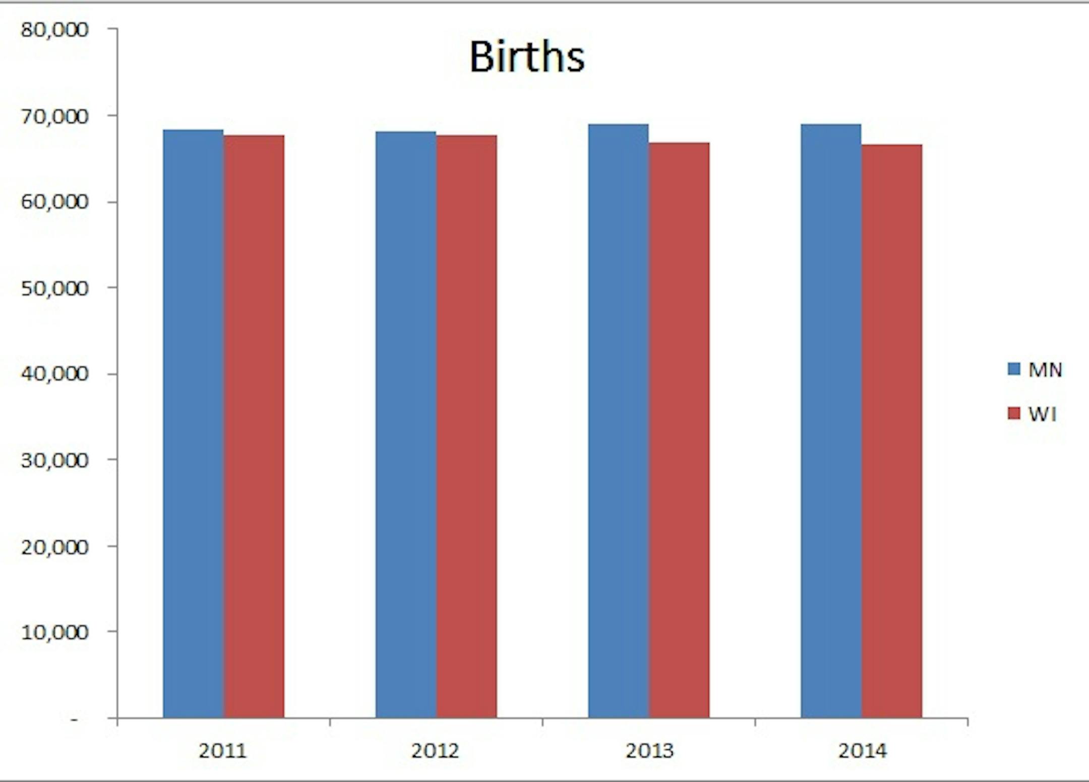 1. More babies are being born in Minnesota than Wisconsin, by a small margin.