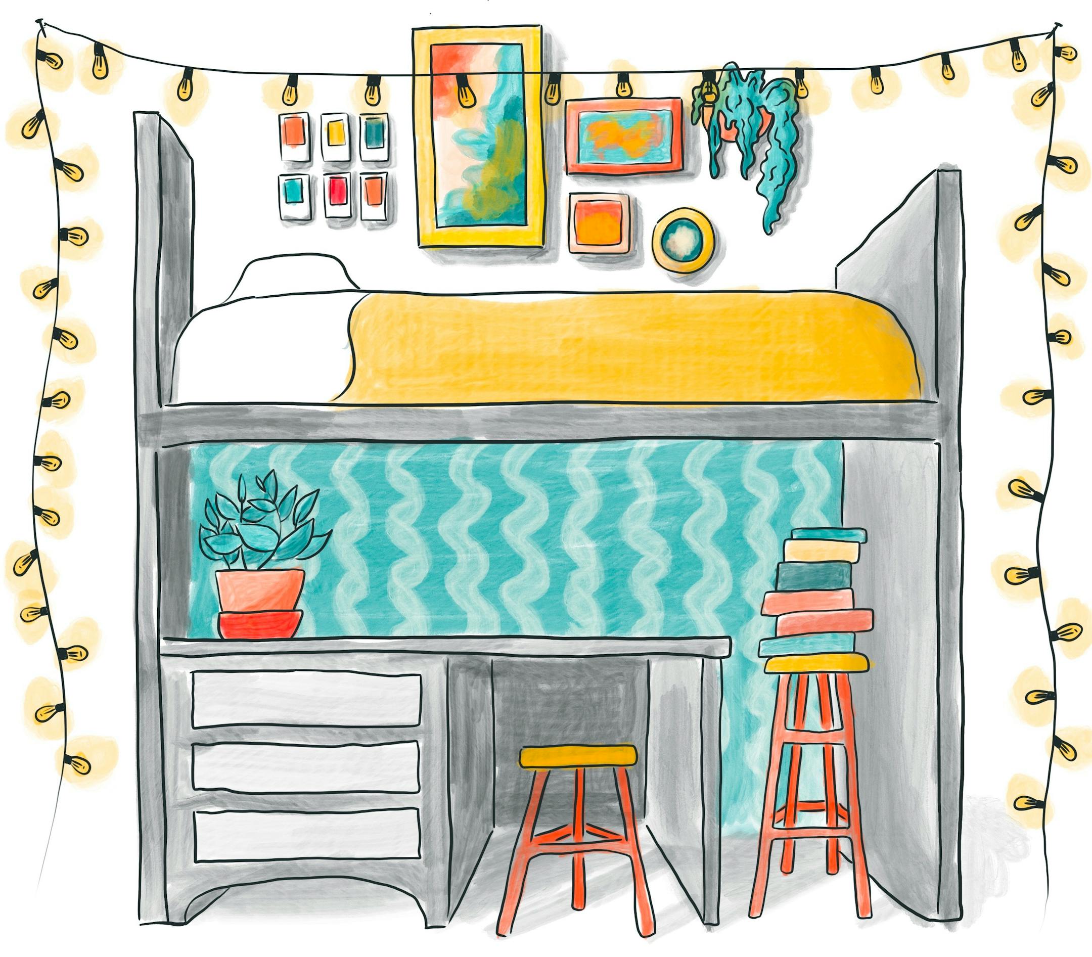 Dorm rooms are often unappealingly plain — just a spare space with off-white walls, utilitarian bunk beds, and particle-board desks.