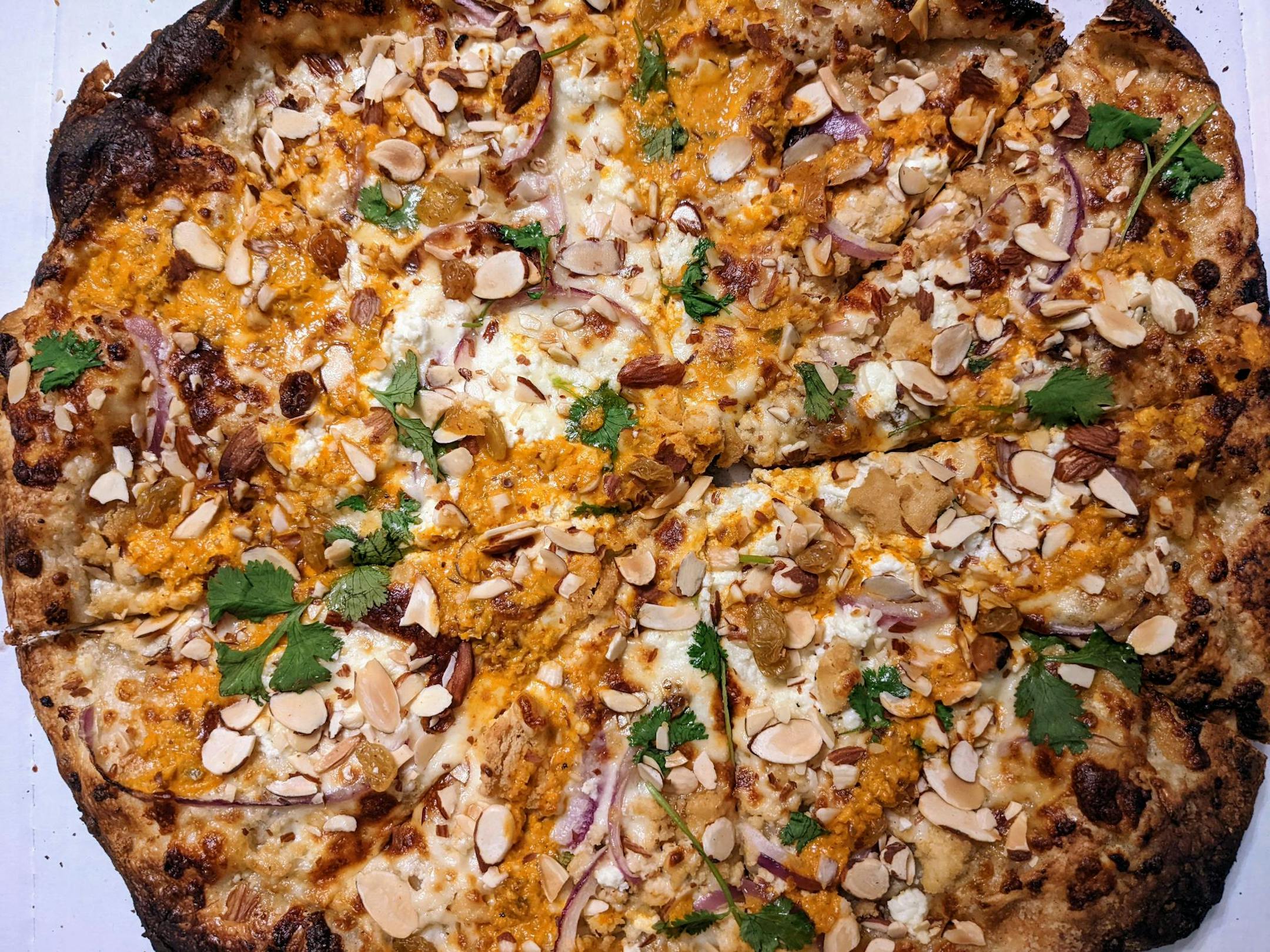 The Tandoori Tikka ($21 for a 14-inch), with its golden raisins, almonds and chutney, is full of comforting Indian flavors, a mix of textures and bites of sweetness. You can order pepperoni here, but you'll also find the most inventive pizza menu for miles, like the Bánh Mì-Za and the roasted beet-topped La Chiva. Co-owners and siblings Connor Riley and Lucy Stoyke-Riley create pizzas influenced by their travels, working seasonal pizzas in when they can. One, with sausage, butternut squash and goat cheese, became so popular that they left it on the menu.