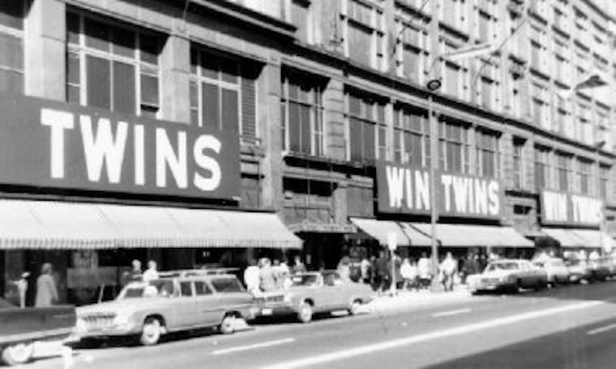 *The other photo, taken outside of Dayton's on Nicollet (also in downtown Minneapolis, of course), shows understated but simultaneously giant "Win Twins" signs. I could probably stare at that picture all day just for the simple contrasts between then and now.