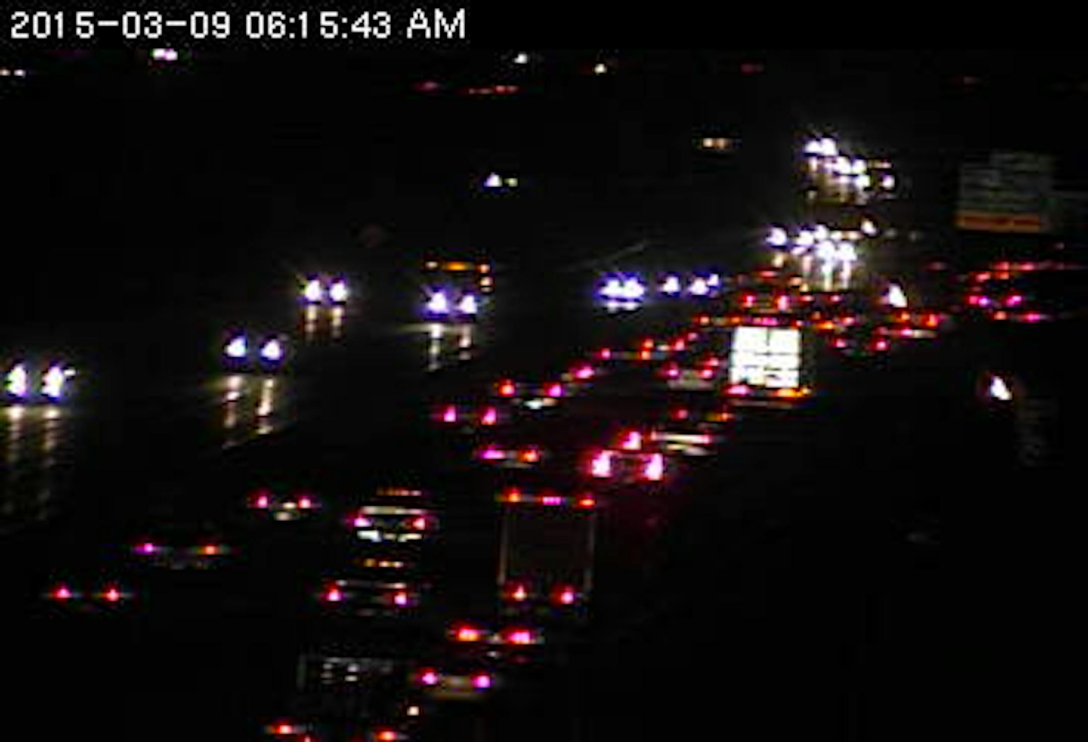 It's a sea of brake lights and bumpers on southbound I-35W from Lake Drive past a wreck at County Road 10 in Shoreview.