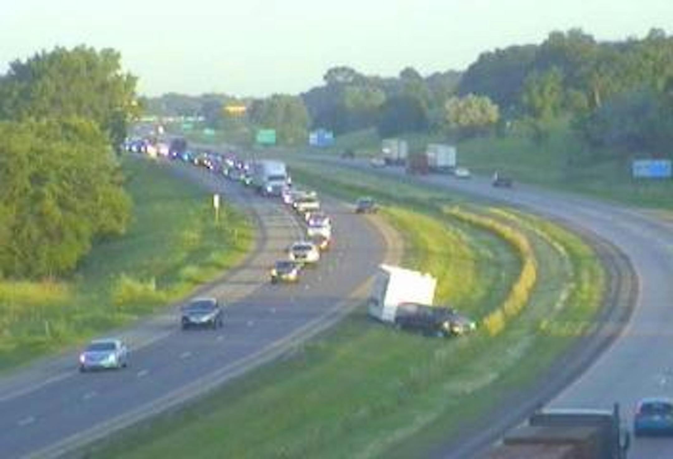 Commuters on eastbound 94 will run into this: a vehicle pulling a trailer off into the center median. This occurred just prior to Hwy. 241 in St. Michael. The slow and go traffic begins at County 37 in Albertville.