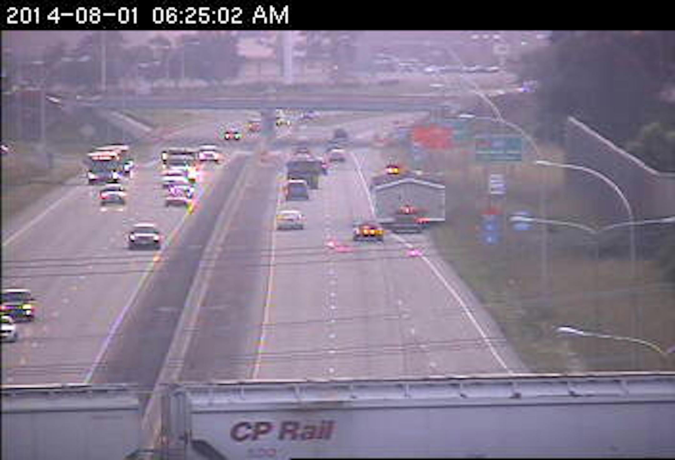 I guess this qualifies as an oversize load. Yep, it's a house that is blocking the right lane of northbound Hwy. 100 at the France Avenue entrance ramp in Brooklyn Center.