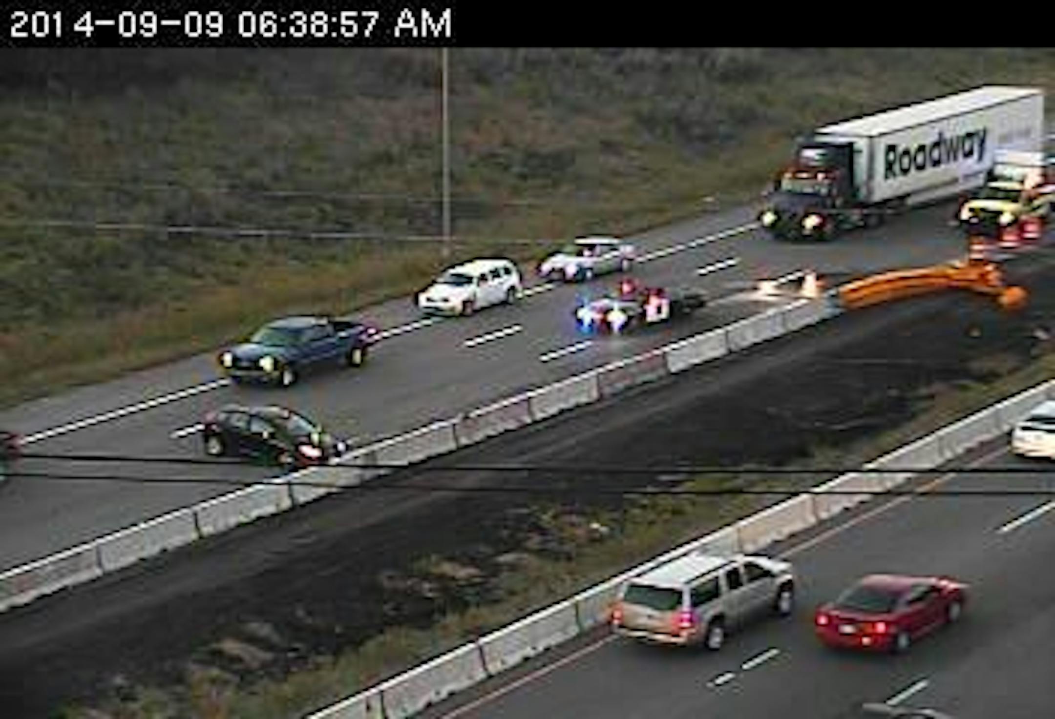 This one has been there for about 20 minutes and it's still blocking two lanes at Carlson Pkwy. A motorist spun out and slammed into the concrete median. Traffic is stacked up at I-394.