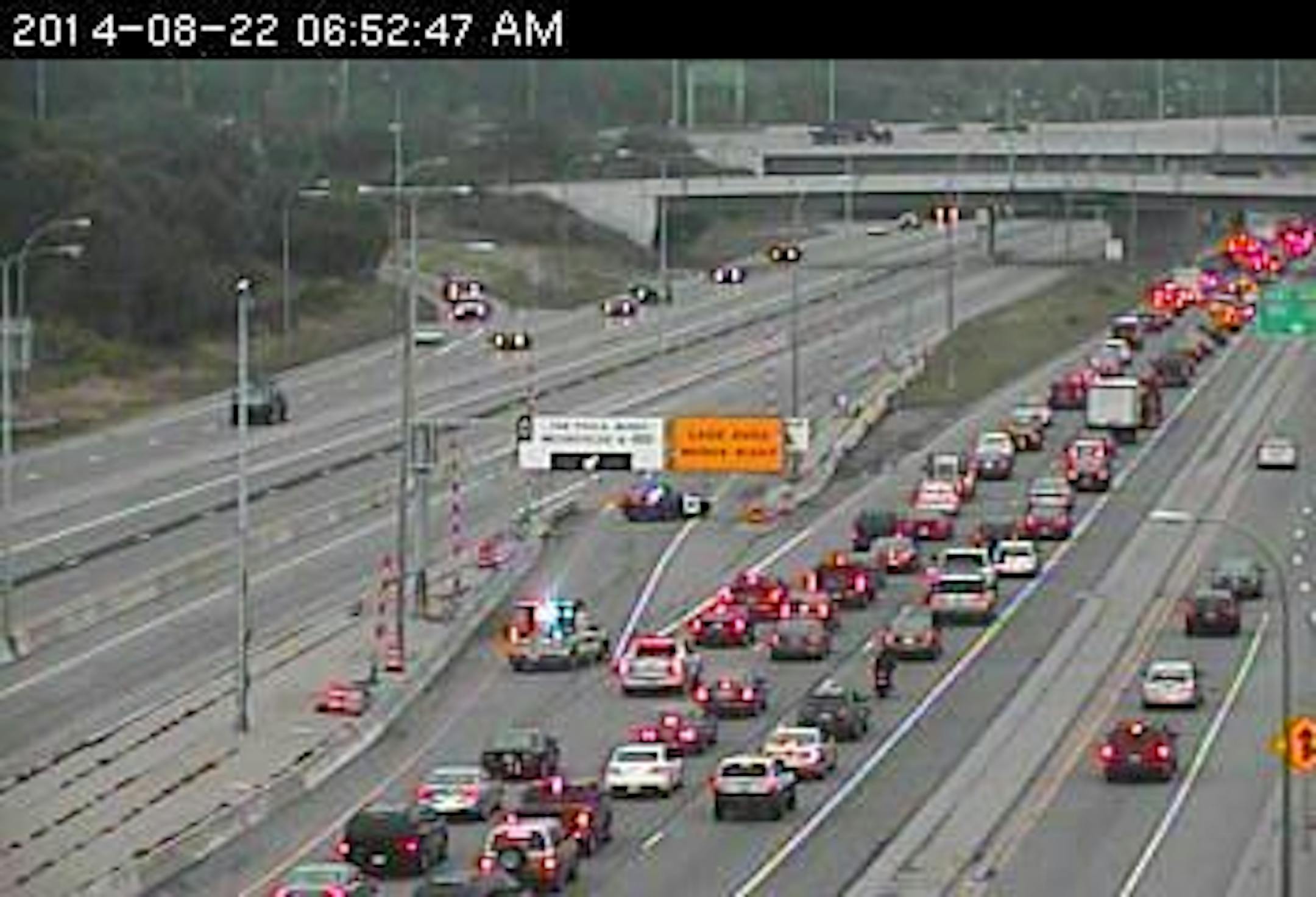With police activity still in progress on I-394 at Penn Avenue, the morning rush has become the morning crawl for commuters heading into and out of Minneapolis.