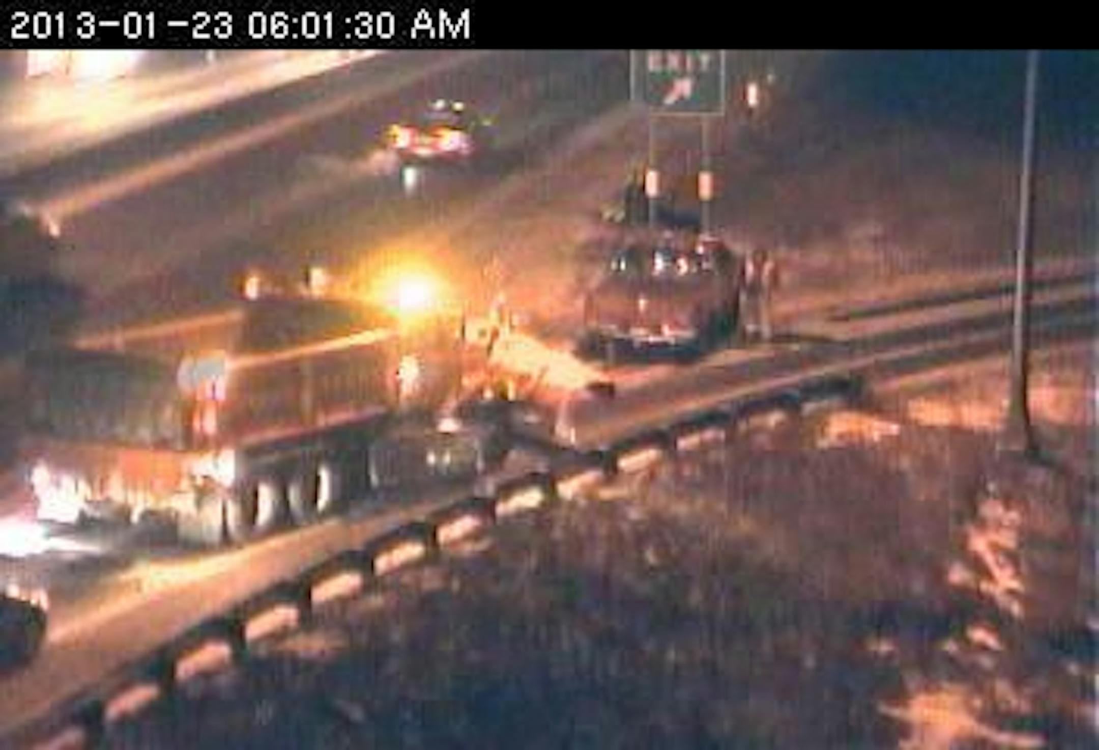 A wreck involving a pickup truck and a MnDOT snow plow has the ramp from southbound Hwy. 169 to east Hwy. 55.