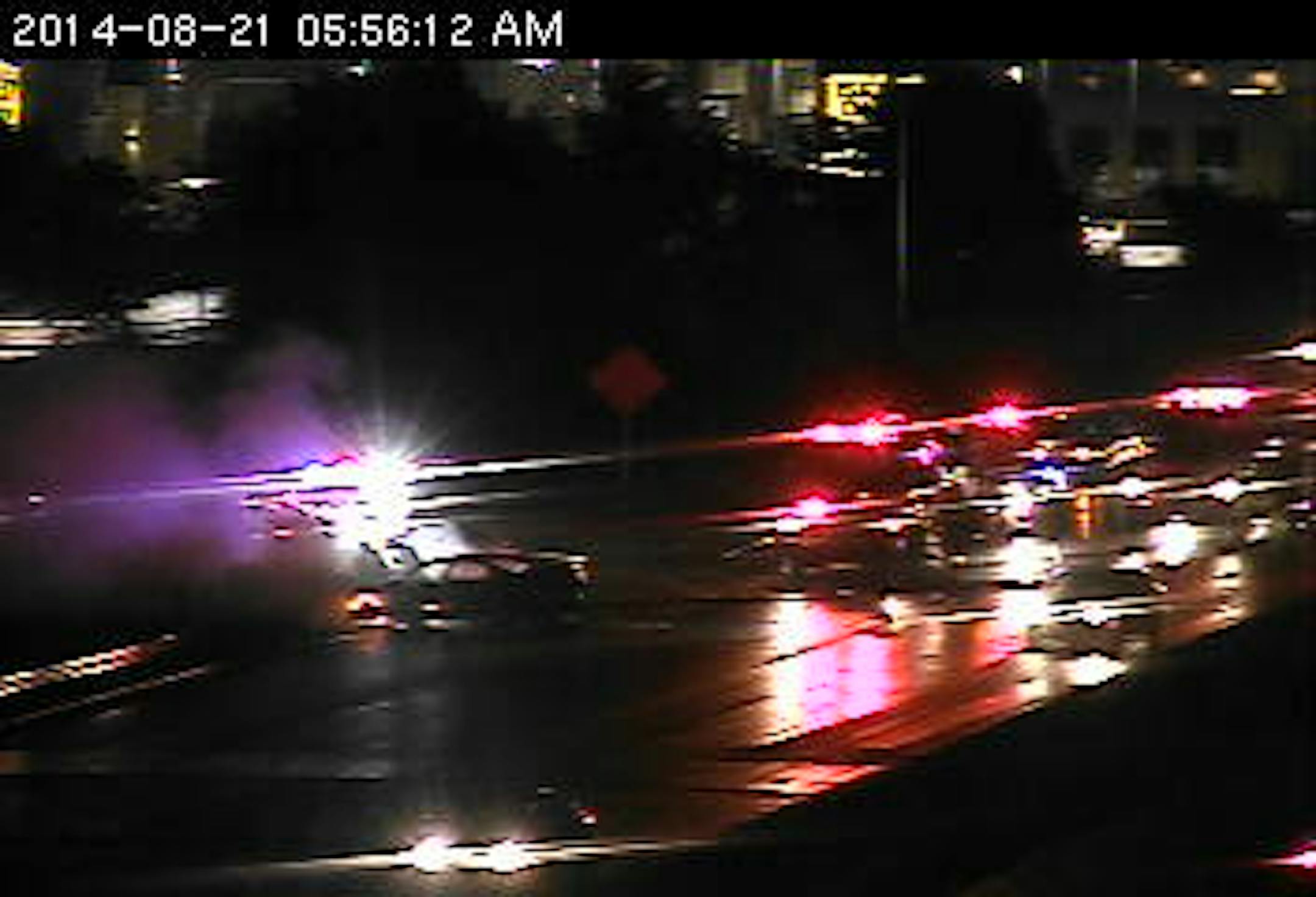 In Bloomington, pictured above, we have a car fire taking out two lanes of westbound 494. The ramp from northbound 35W to westbound 494 is closed.