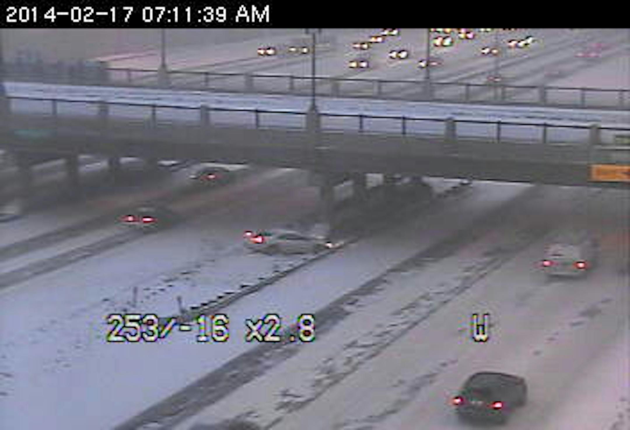 Light levels of traffic due to the President's Day holiday mitigated the weather problems, but that did not prevent a head-on crash on the westbound 610 bridge over the Mississippi River bridge in Brooklyn Park. There were no immediate reports of injuries.