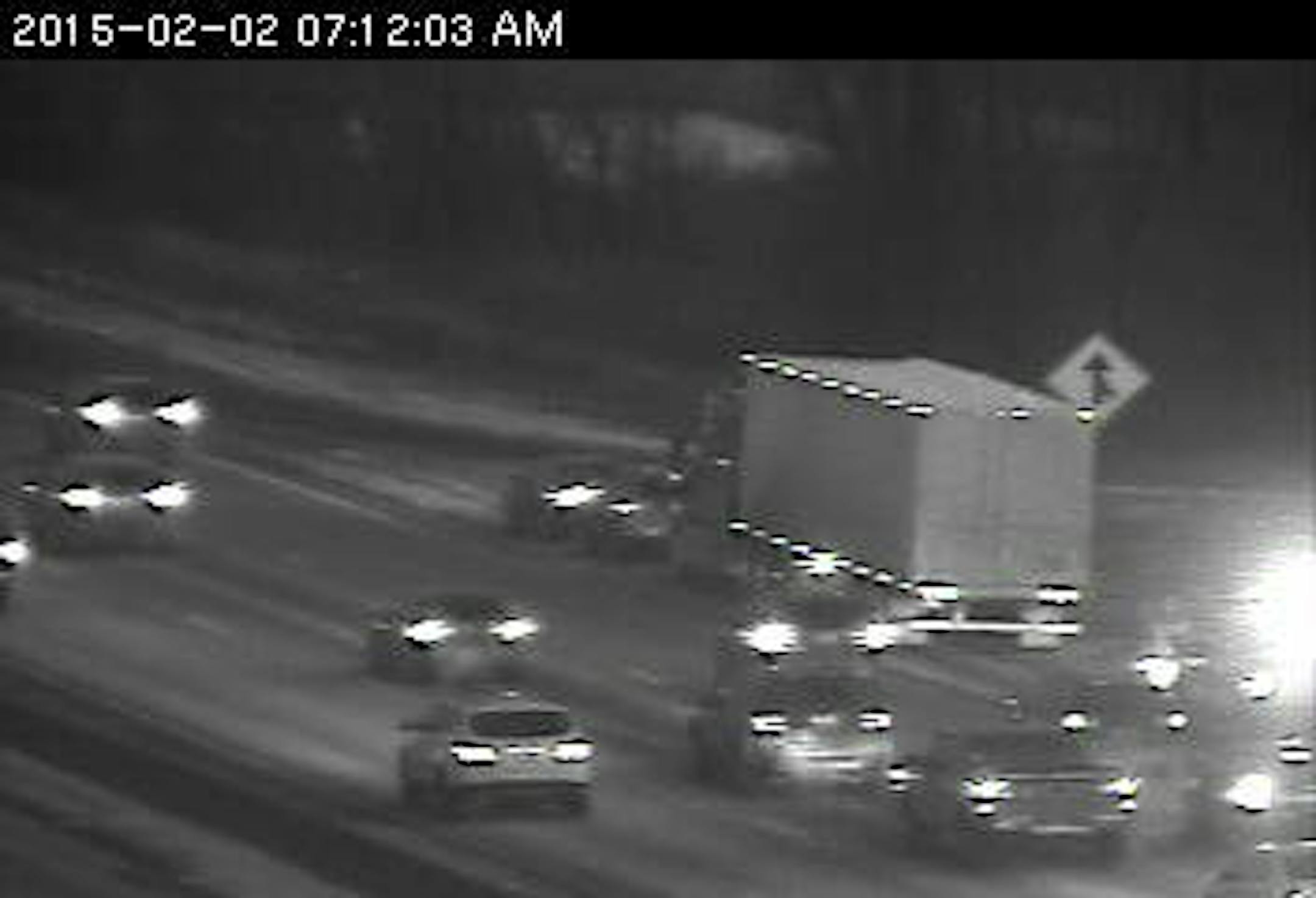 Surprisingly, this car vs. semi crash on the right shoulder of northbound I-35W at Hwy. 13 is not causing any traffic problems. Commuters are moving right along from Burnsville through Bloomington.