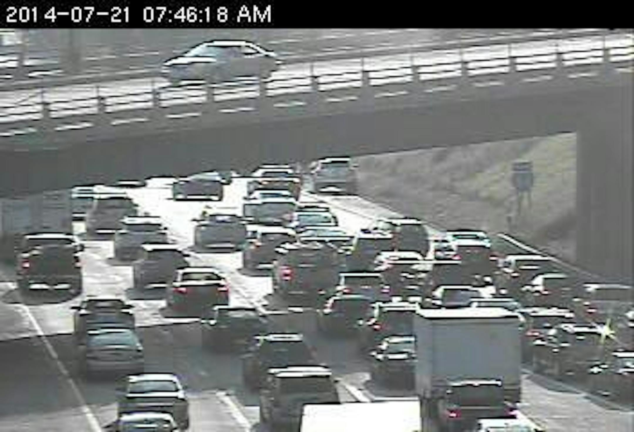 7:45 a.m. update: Rollover tangling traffic on I-94 in downtown Minneapolis
