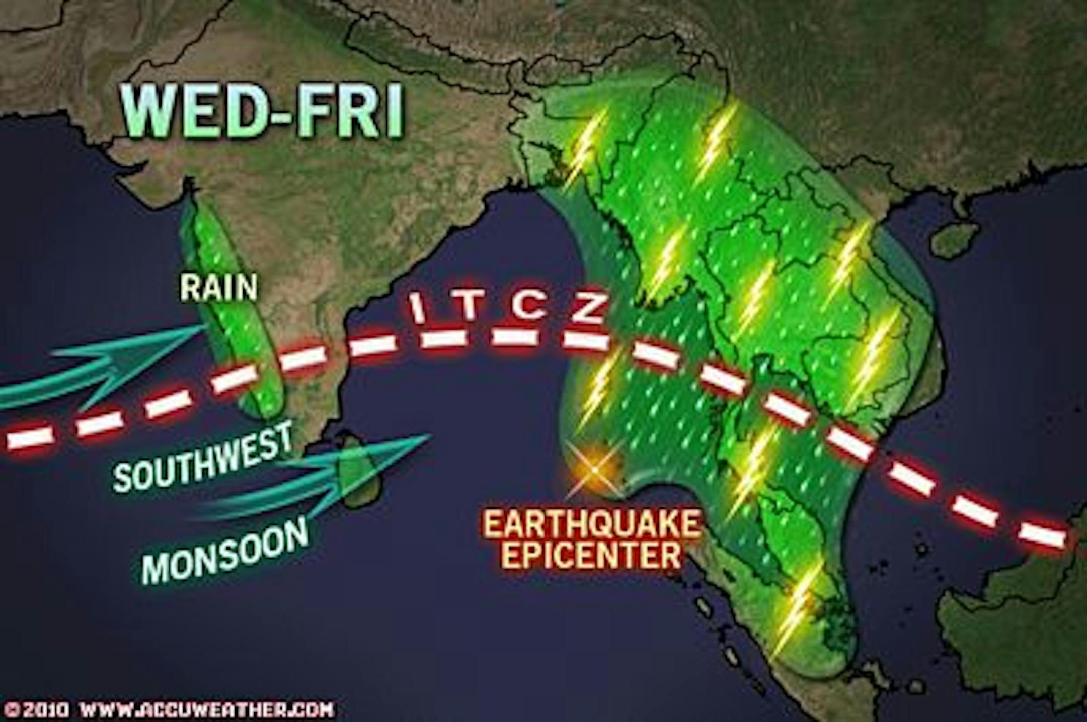 A 7.5-magnitude earthquake shook the islands of the Indian Ocean earlySunday morning, and rain will fall on any clean-up efforts.The quake rattled the Nicobar and Andaman islands, prompting a tsunami alertthat was later dropped when no sea level changes were reported.