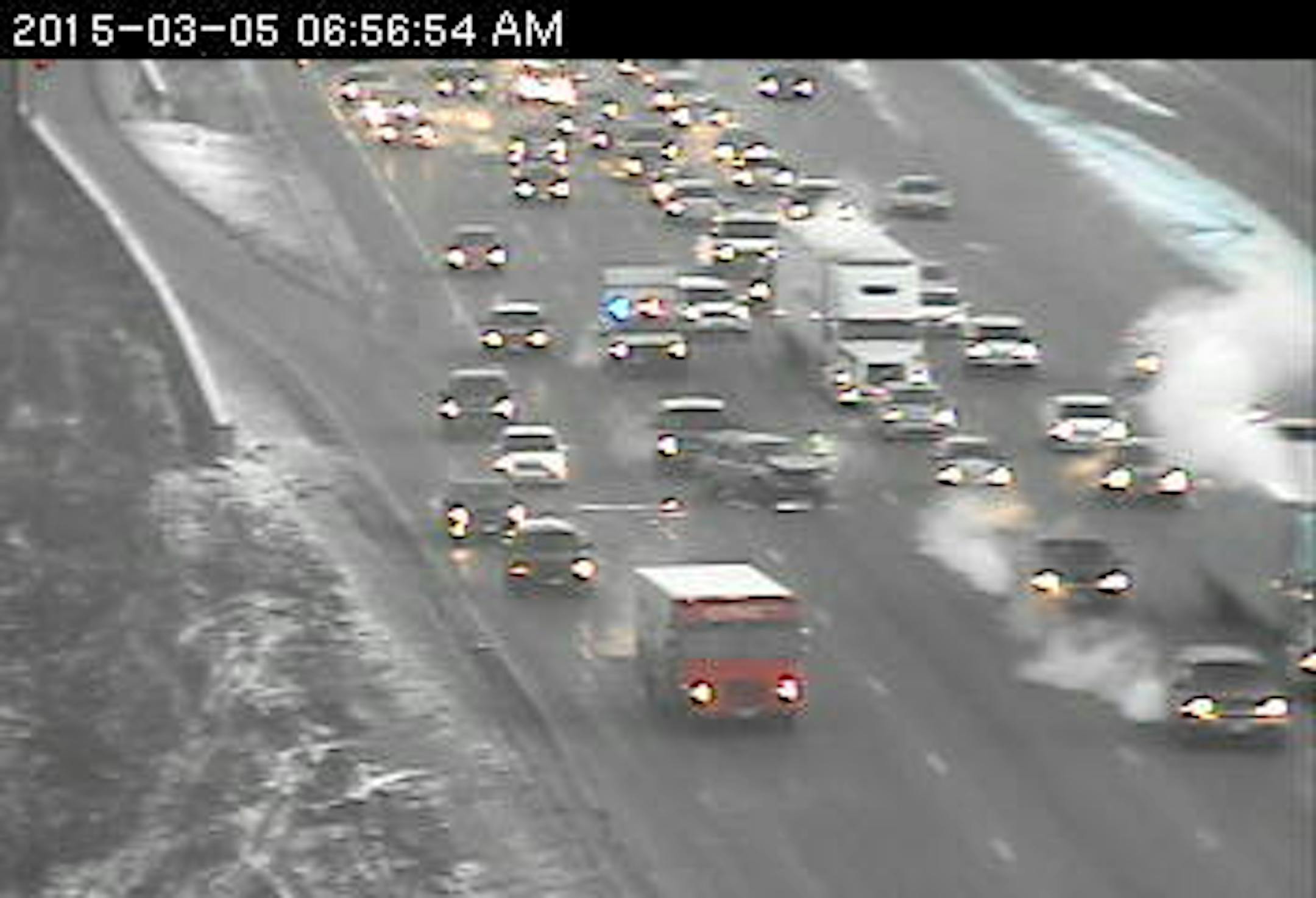 The two major trouble spots include a crash in the center lanes of southbound 35W at 46th Street in south Minneapolis. The photo above shows the carnage.