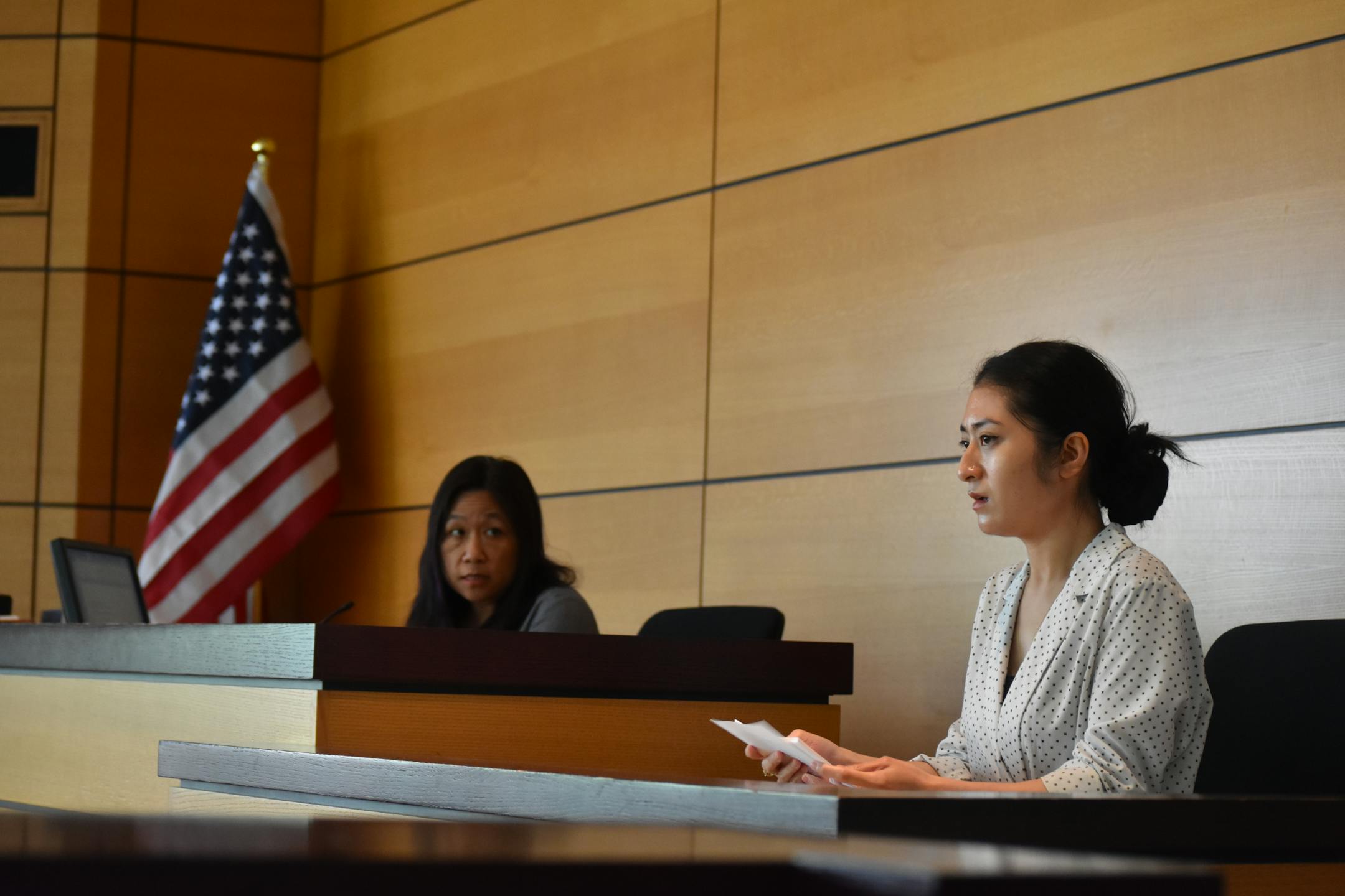 2. "Courtroom" has an unusual structure. It honors its source material. Some have likened it to a docudrama or "reality theater." Both have some truth. But Rodriguez and Bertumen like to defer to what Moayed named it in his title: a re-enactment.